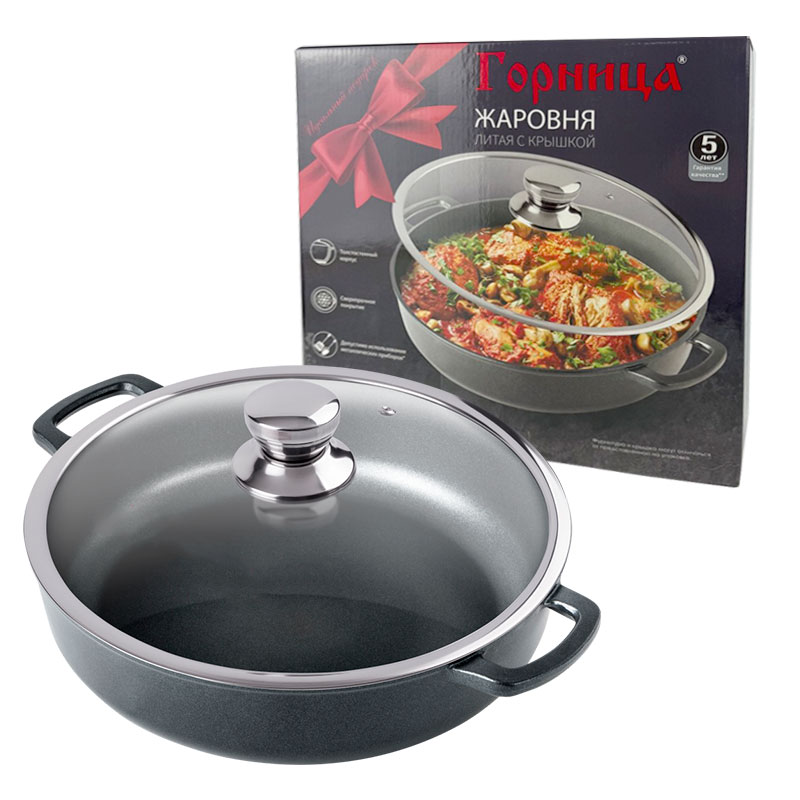 Жаровня Горница литая 26см/3л с крышкой в подароч.коробе, ГКж2600и
