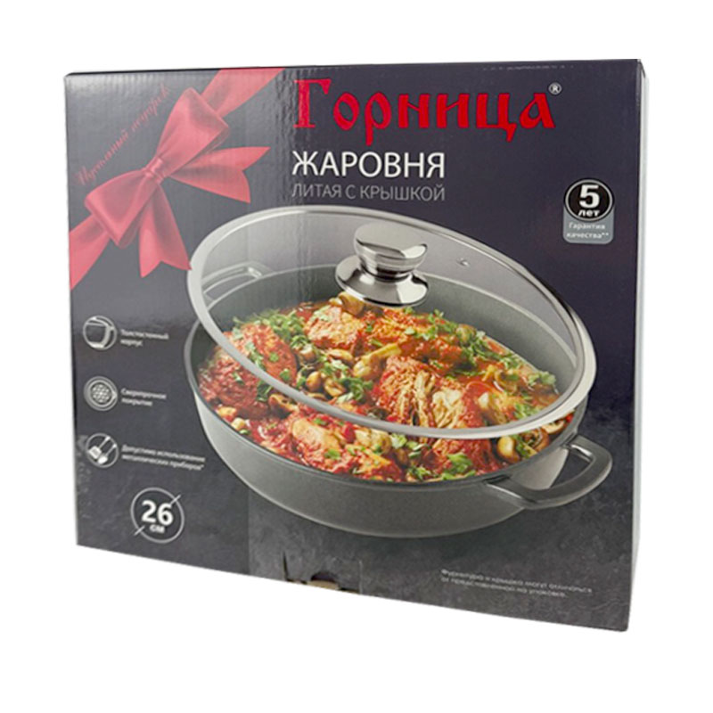 Жаровня Горница литая 26см/3л с крышкой в подароч.коробе, ГКж2600и