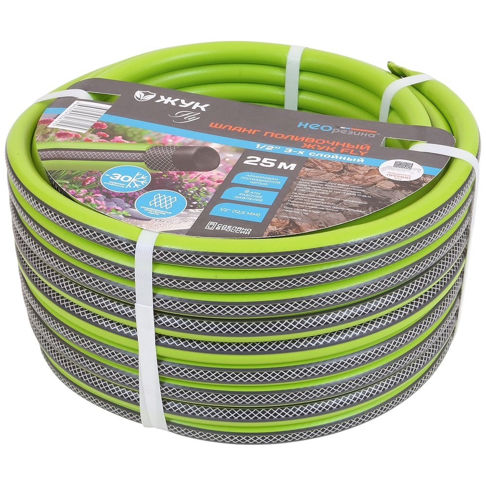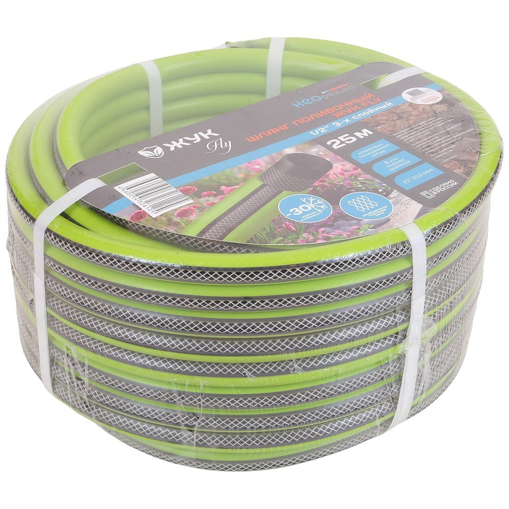 Шланг поливочный Жук FLY 1/2" 3-х слойный зеленый (бухта 25 метров)