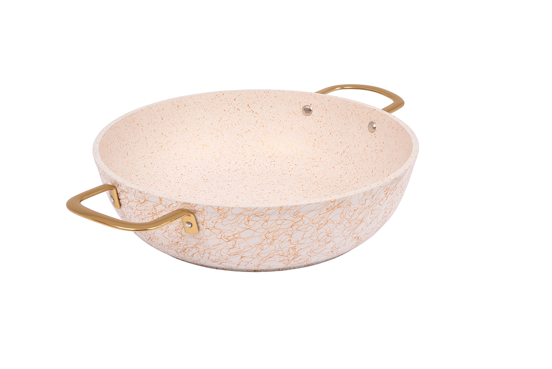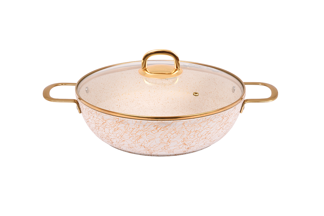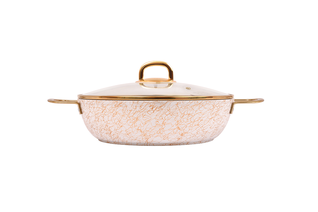 Сотейник 300/85мм с ручками , со стеклянной крышкой, АП линия "Грация" (белый/золото) сгбз308а