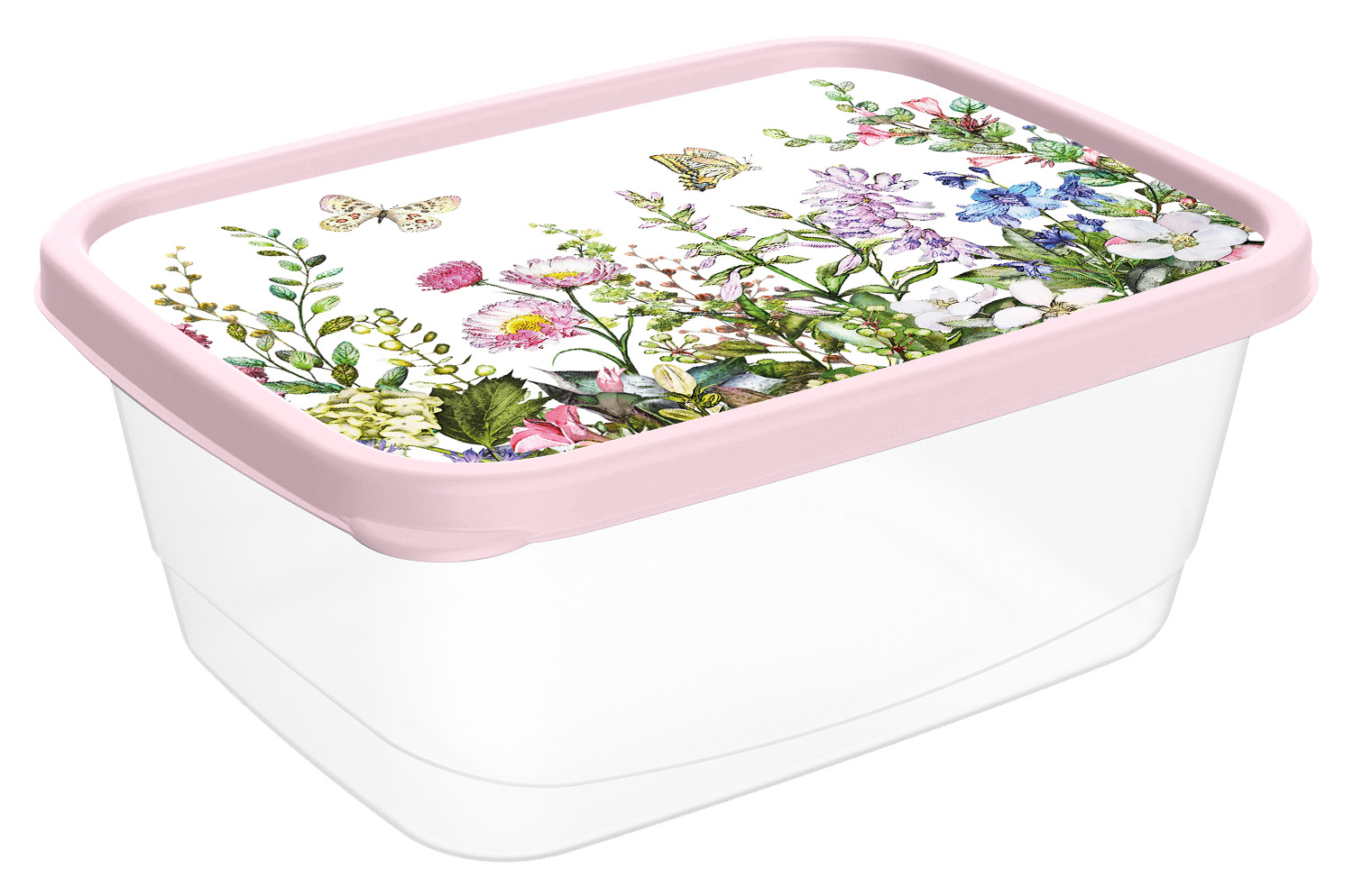 Контейнер для продуктов прямоугольный 1,5л с декором "Цветущий луг" (светло-розовый) 223111007/01