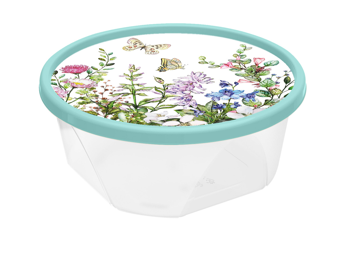 Контейнер для продуктов круглый 0,4л с декором "Цветущий луг" (светло-зеленый) 223110617/01