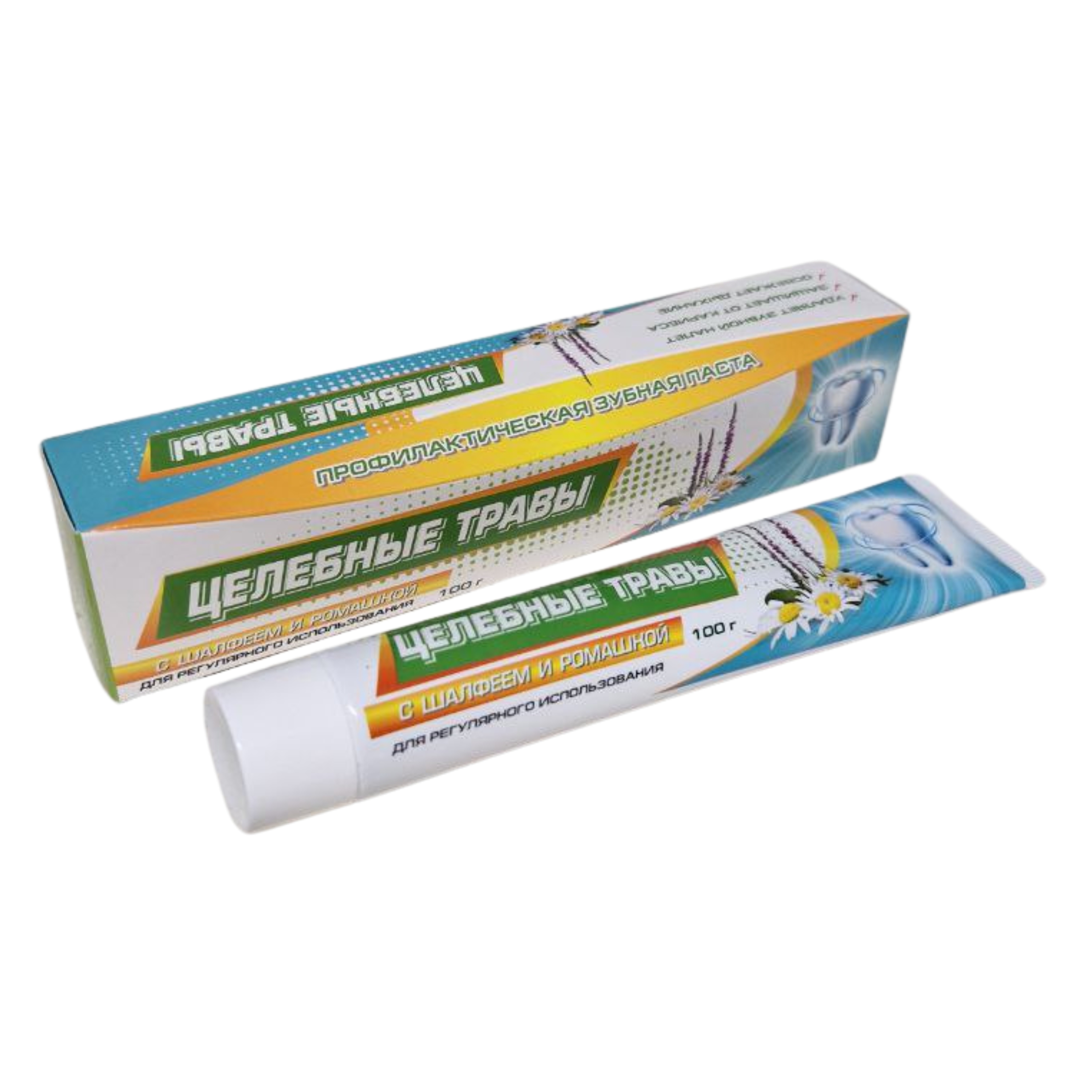 Зубная паста Целебные Травы с экстрактом шалфея и ромашки обладает приятным вкусом, препятствует возникновению кариеса, эффективно удаляет зубной налет, обеспечивает комплексный уход за полостью рта. Надолго освежает дыхание.