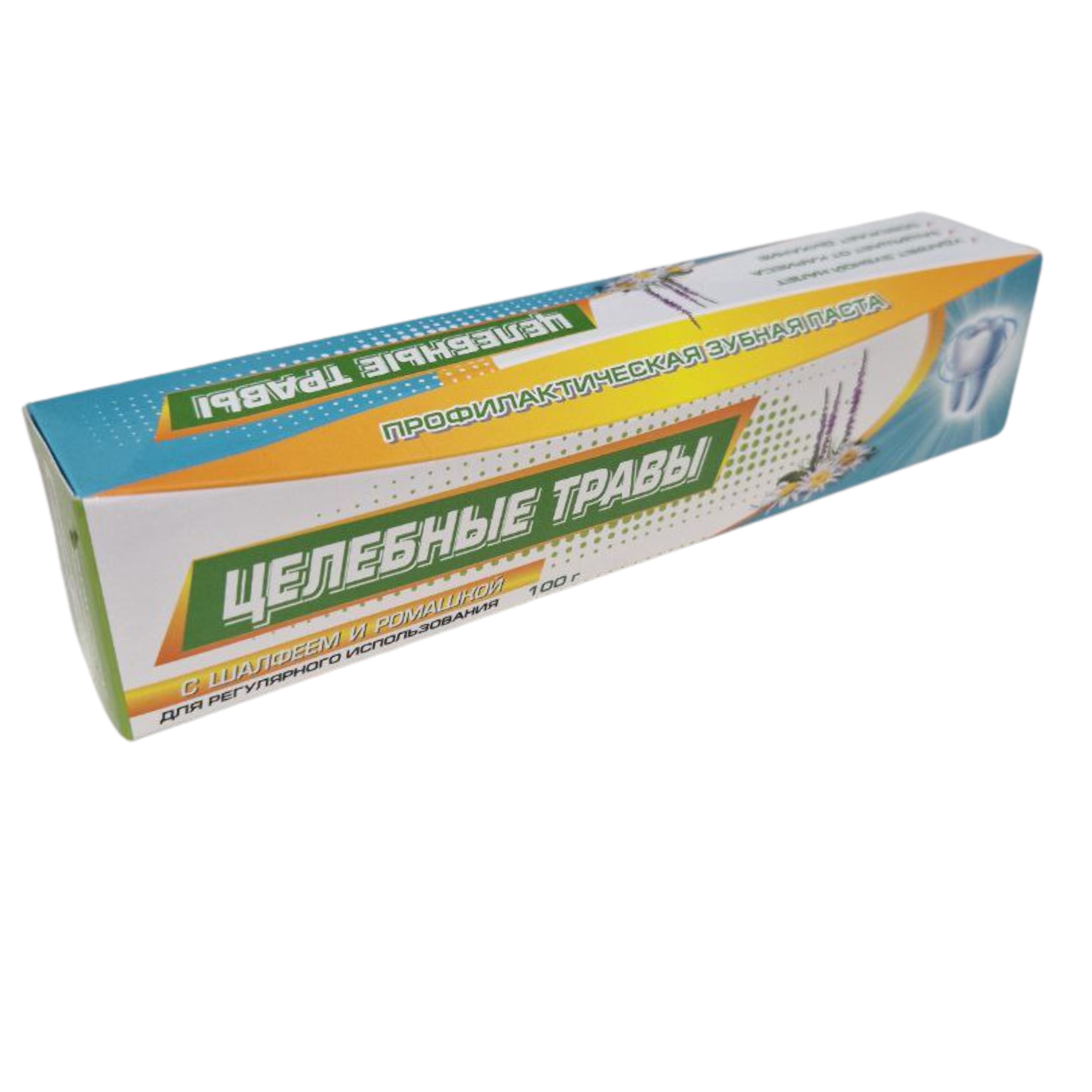 Зубная паста Целебные Травы с экстрактом шалфея и ромашки обладает приятным вкусом, препятствует возникновению кариеса, эффективно удаляет зубной налет, обеспечивает комплексный уход за полостью рта. Надолго освежает дыхание.