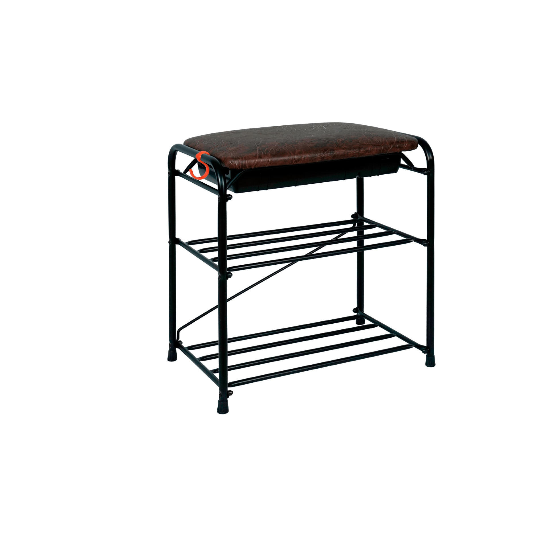 Подставка для обуви "Альфа 13" с сиденьем и ящиком (Черный) (3-х полочная,45см)