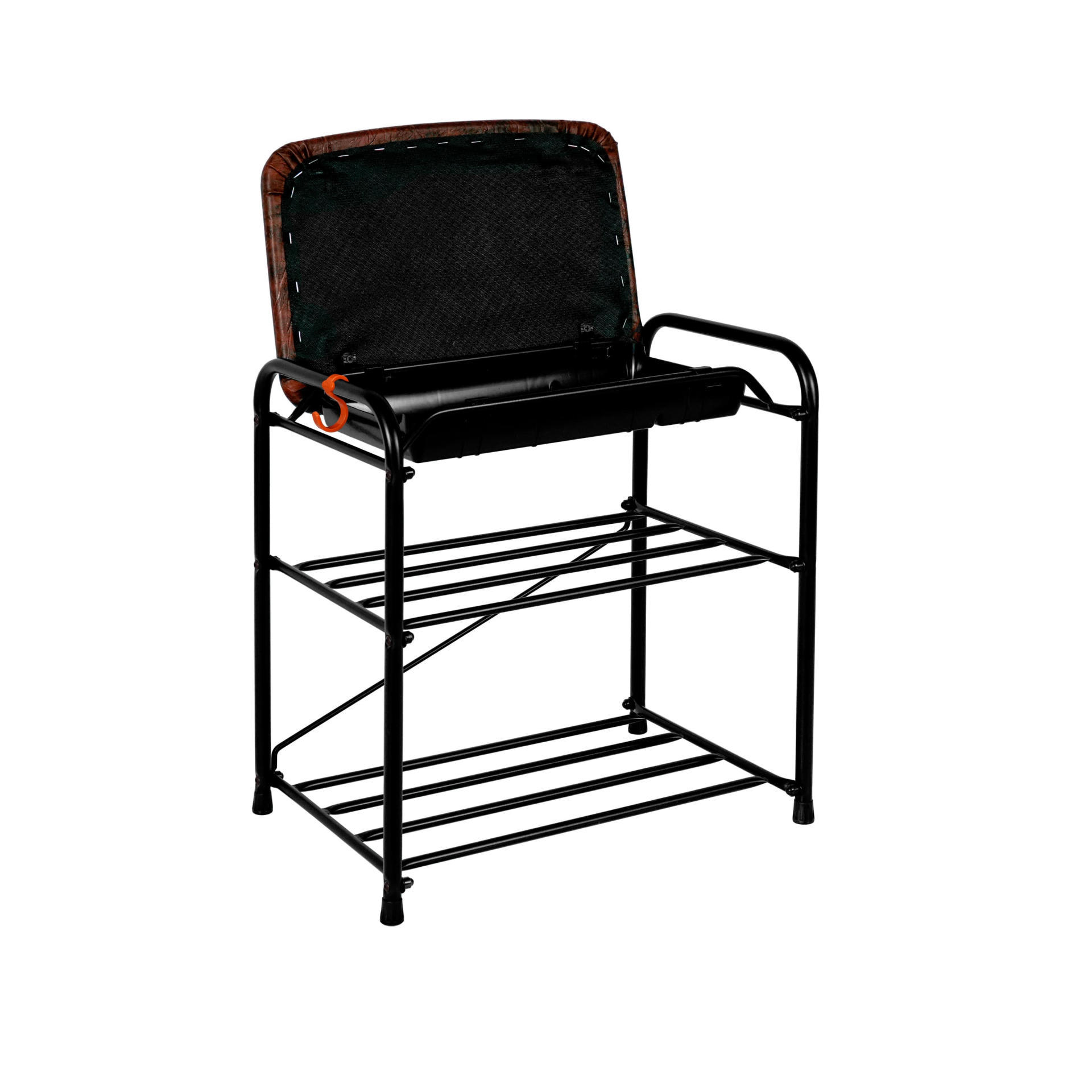 Подставка для обуви "Альфа 13" с сиденьем и ящиком (Черный) (3-х полочная,45см)