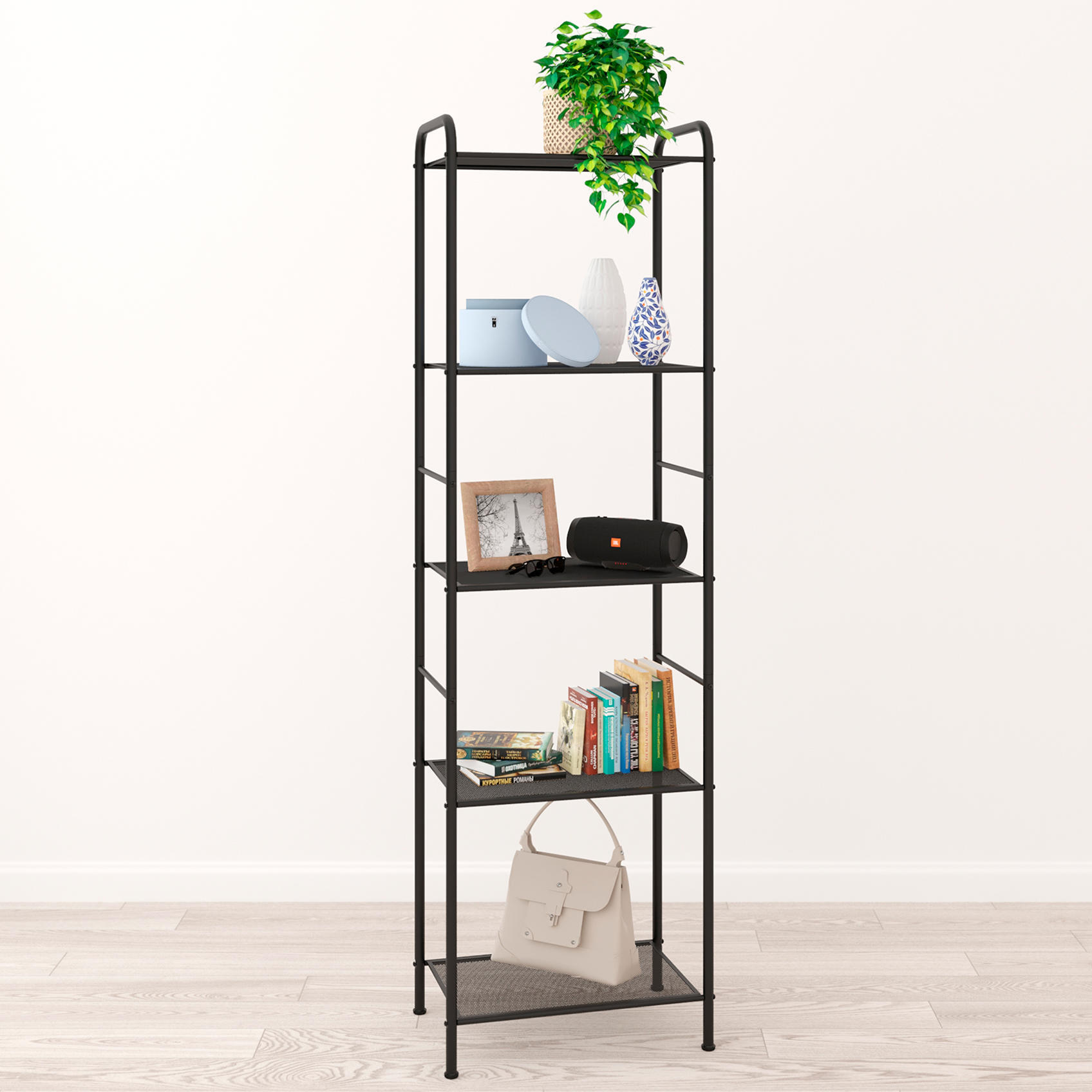 Напольный стеллаж - это стиль и качество по доступной цене и средство для организации хранения в вашей квартире! Простой в сборке аксессуар украсит любое помещение. Изделие изготовлено из высокопрочного металлического материала с полимерный покрытием. Оно имеет прочный каркас и прослужит долгое время. Конструкция оснащена 5 полками для вашего комфорта и удобства. Они фиксируются вертикальными перекладинами на углах. Открытый комнатный стеллаж на регулируемых ножках имеет надежные крепления. Сетчатые полочки выдержат нагрузку до 8 кг. Эта модель хороша не только для домашнего пользования всей семьи. Благодаря минималистичному красивому дизайну разборная этажерка добавит уют в любое офисное помещение или дачный дом. Бытовой интерьерный стеллаж станет декором в балконном или комнатном пространстве. Его можно использовать как книжный шкаф или хранить продукты. Система хранения имеет практичные высоту и ширину. На нем можно хранить книги одежду обувь украшения, аксессуары, сувениры, цветы и растения.