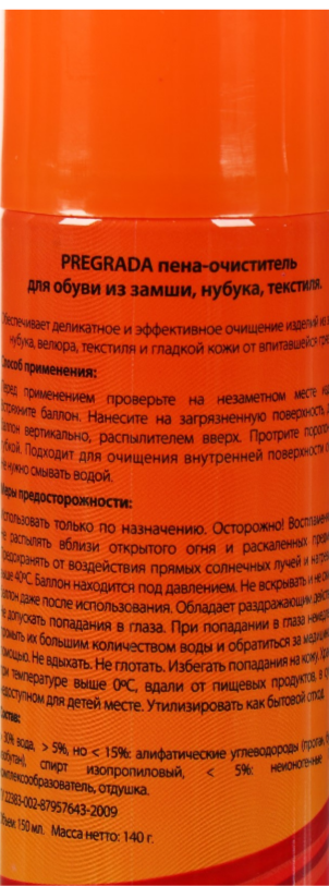 Пена очиститель для обуви 150мл PREGRADA PR-1499