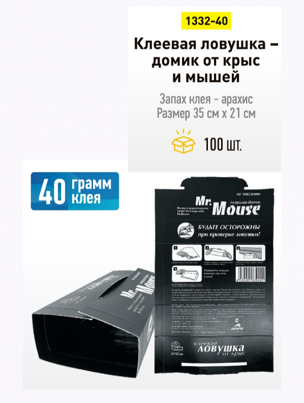Mr.Mouse клеевая ловушка - домик от грызунов - это высокоэффективное, нетоксичное средство, предназначеное для уничтожения грызунов. Обладает высокой уловистостью и длительным фиксирующим действием в отношении грызунов. Абсолютно безвредно для человека и домашних животных, не оказывает раздражающего воздействия на кожу. Клеевые ловушки Mr.Mouse просты в применении и могут быть установлены в любом месте, в том числе и в местах хранения пищевых продуктов.