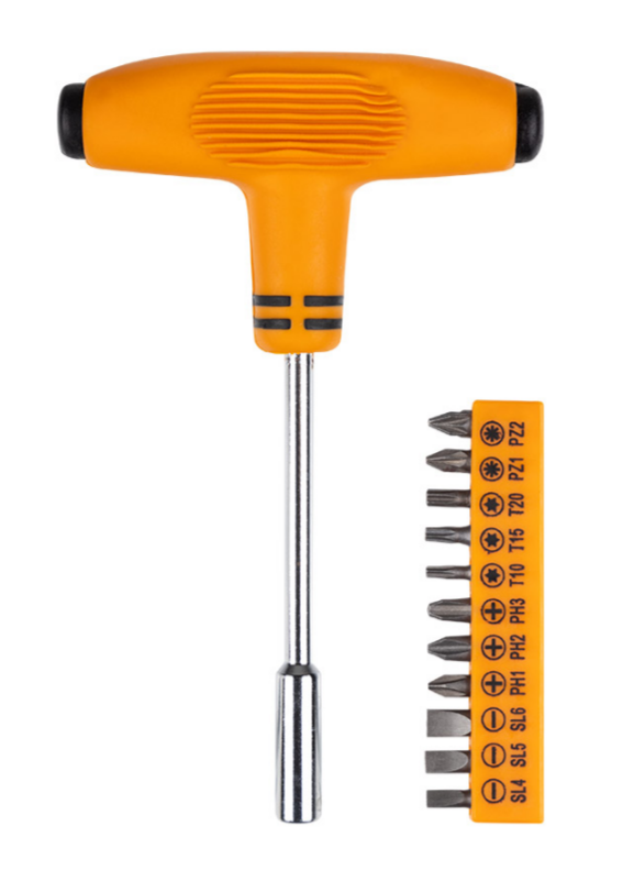 Отвертка с Т-образной ручкой с набором бит 12 предметов 008610