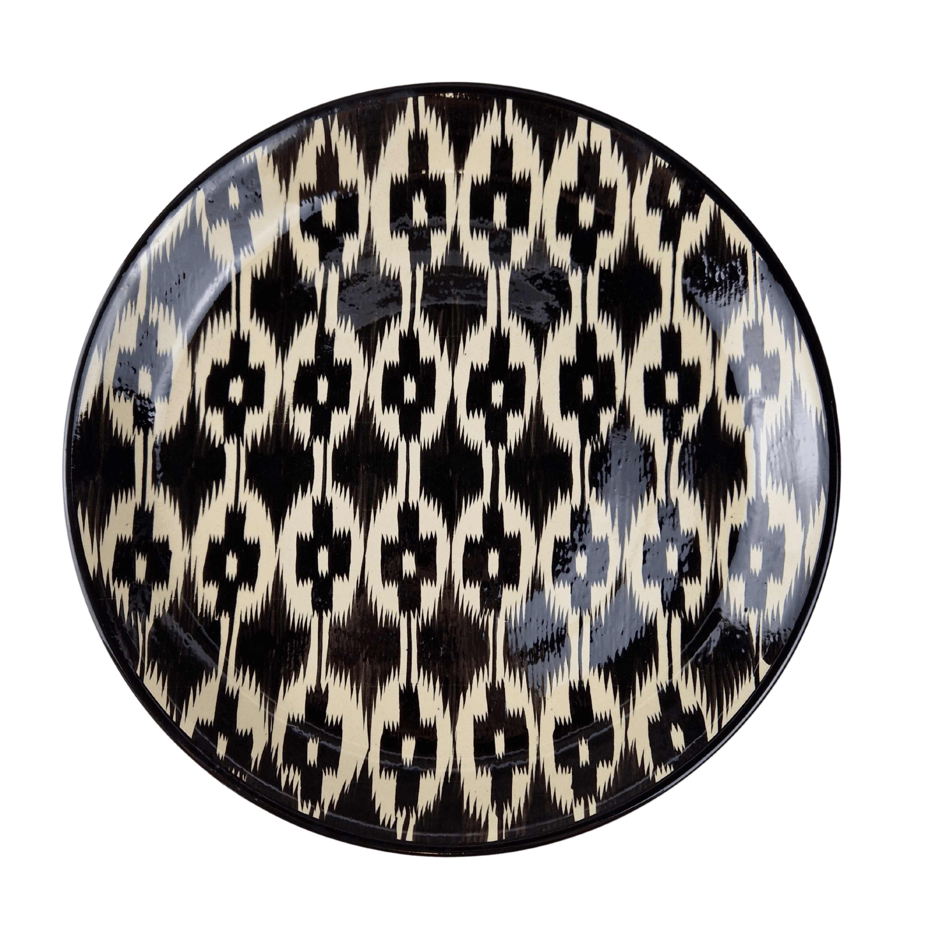 Ляган 38см, плоский Риштанская керамика Атлас черный