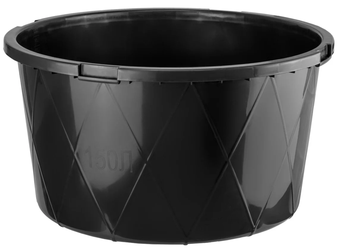Круглый строительный таз 150л применяется для замешивания цементных и гипсовых растворов, смесей на основе полимеров, а также для хранения и перемещения различных составов и сыпучих материалов. Модель отличается высокой прочностью и небольшим весом. Объём: 150 л.