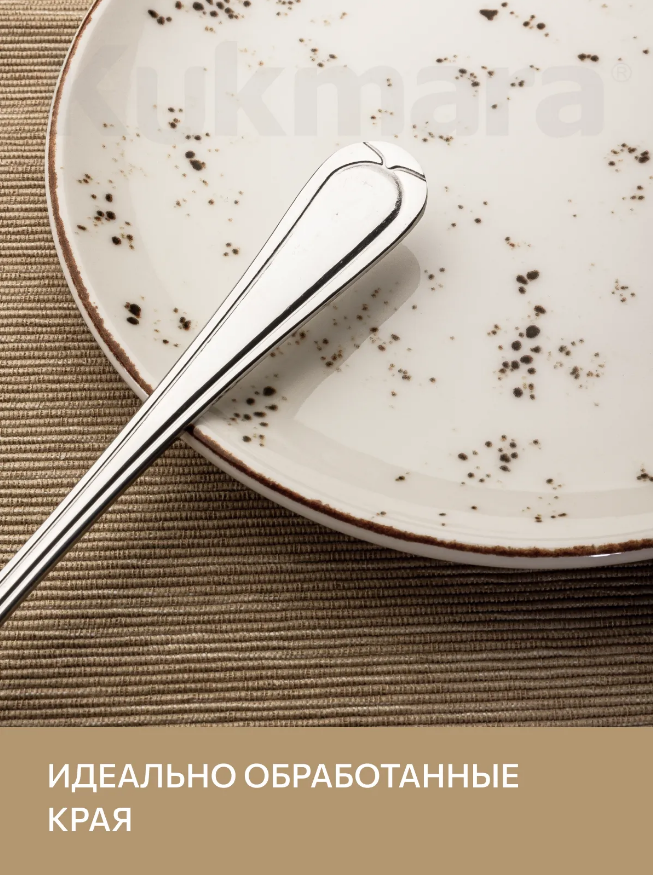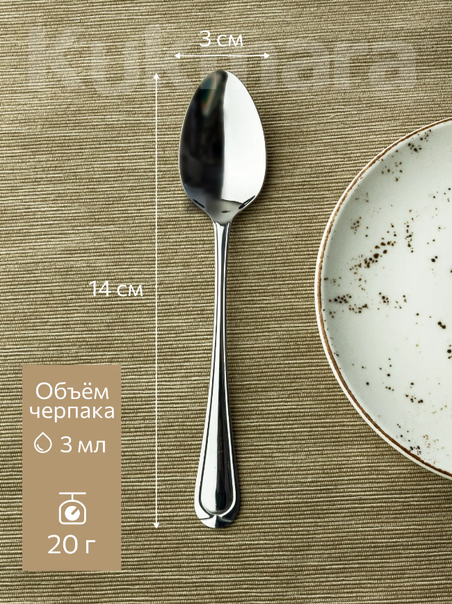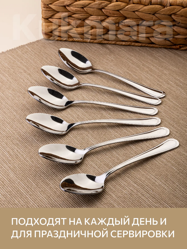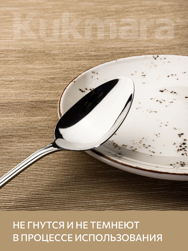 Экологичность: использование безопасных для здоровья материалов гарантирует сохранение вкусовых качеств блюд. Нержавеющая сталь AISI430 не имеет запаха и полностью безопасна для всей семьи. Надежность: прочные, гладко отполированные ложки не гнутся и отлично сохраняют свои эксплуатационные свойства.