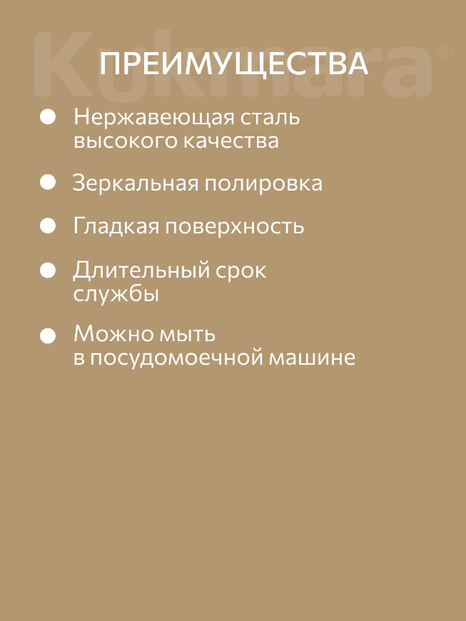 Легкость в уходе: изделия из нержавеющей стали легко очищаются и не требуют специального обслуживания.