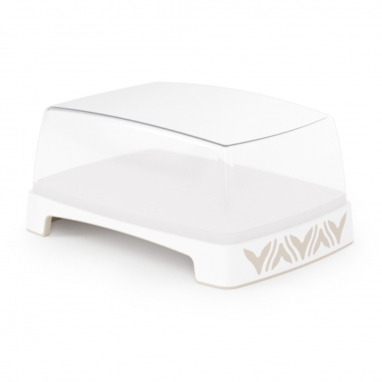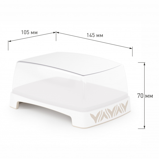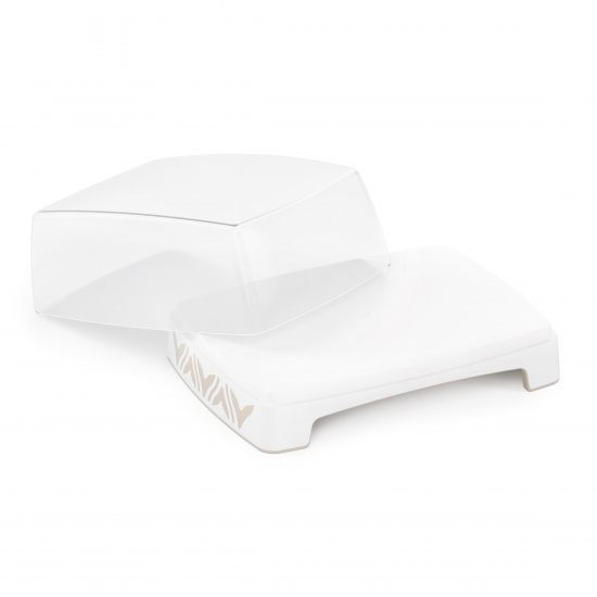 Масленка украсит ваш стол и позволит сохранить сливочное масло свежим и вкусным длительное время. Масленка состоит из прозрачной пластиковой крышки и прямоугольного пластикового подноса, украшенного изысканным узором. Крышка масленки - прозрачная как стекло, сделана из пластика, а материал отличается идеально гладкой структурой. Золотистый брусок сливочного масла остается на виду, придавая шарм и очарование сервированному столу. Изделие можно хранить в холодильнике и мыть в посудомойке. Вы можете резать масло прямо на подносе, так как он не имеет бортиков.