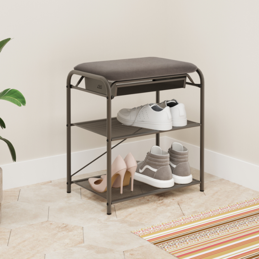 Подставка для обуви Гранада с сиденьем и ящиком ткань нубук графит предназначена для хранения обуви.