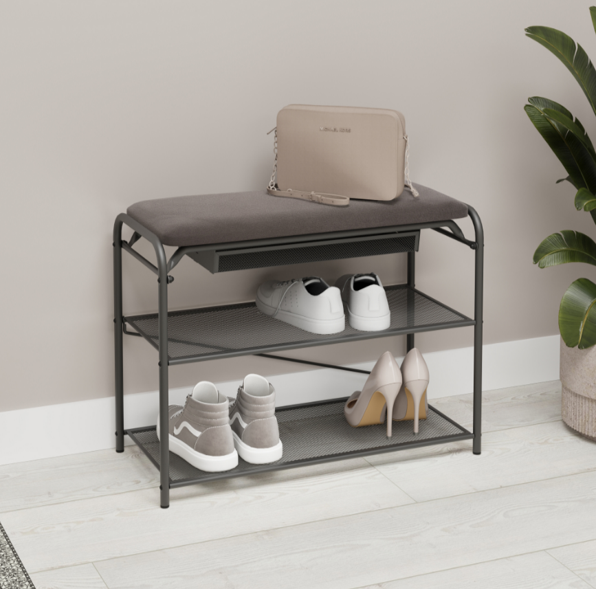 Подставка для обуви "Гранада 23В_НБК" с сиденьем и ящиком нубук (Графит)