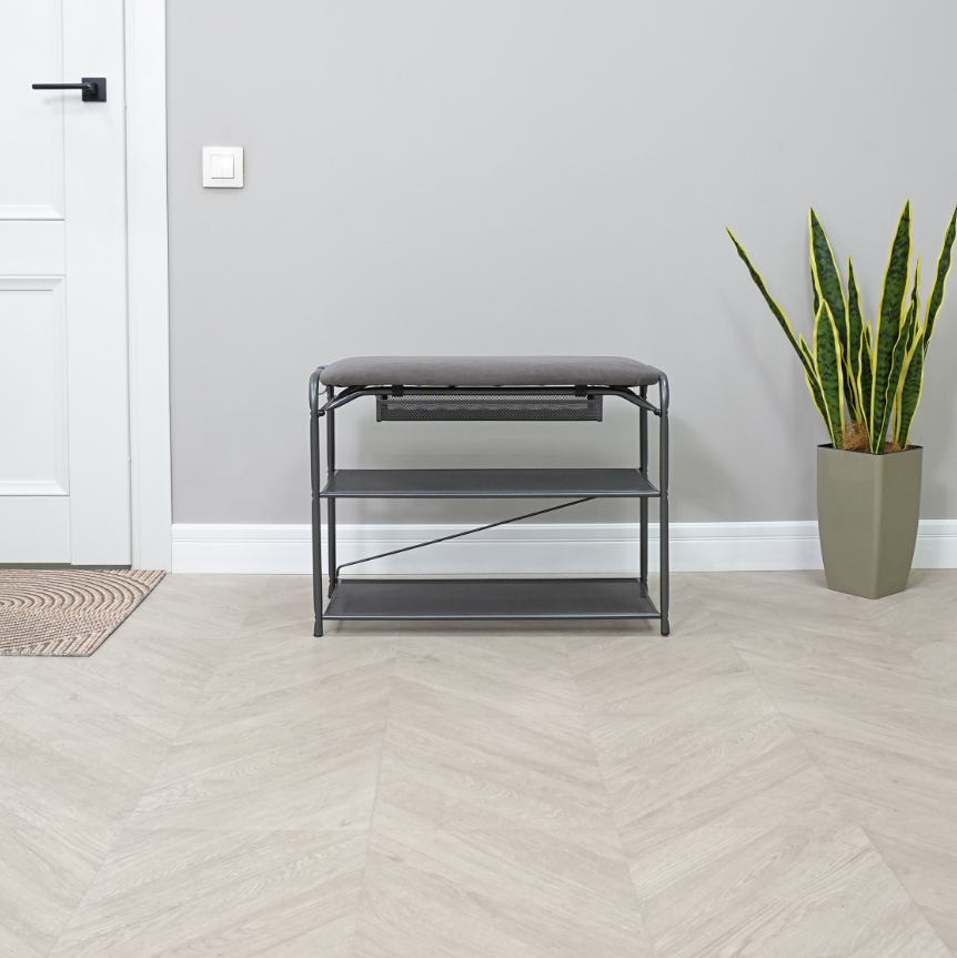 Подставка для обуви ЗМИ Гранада 23В_НБК с сиденьем и ящиком ткань нубук графит ПДОГ23ВНБК Гр предназначена для хранения обуви.
