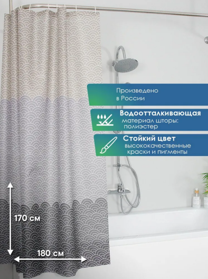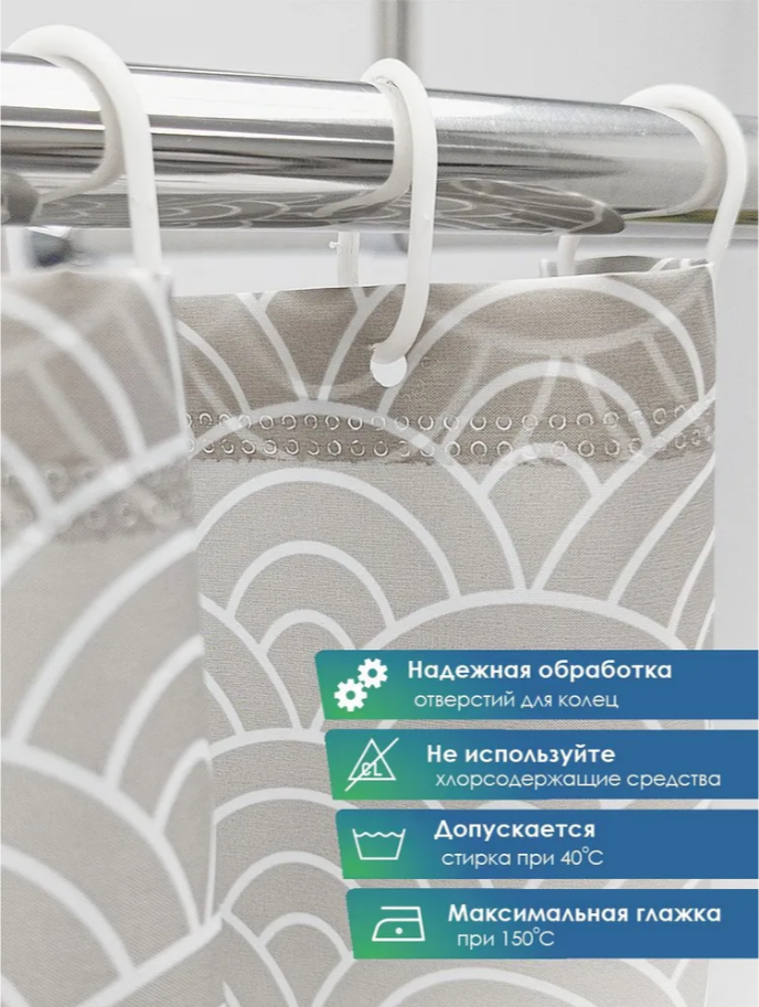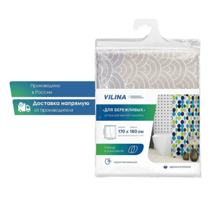 Полиэстеровые шторы «Для бережливых» выполнены в классических дизайнах. В комплект входит 8 колец, предназначенных для крепления на карнизе в ванной комнате. Они безусловно придутся Вам по вкусу.
