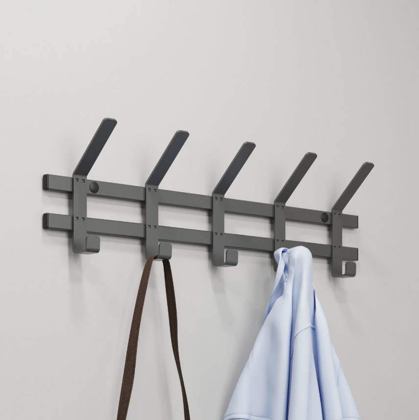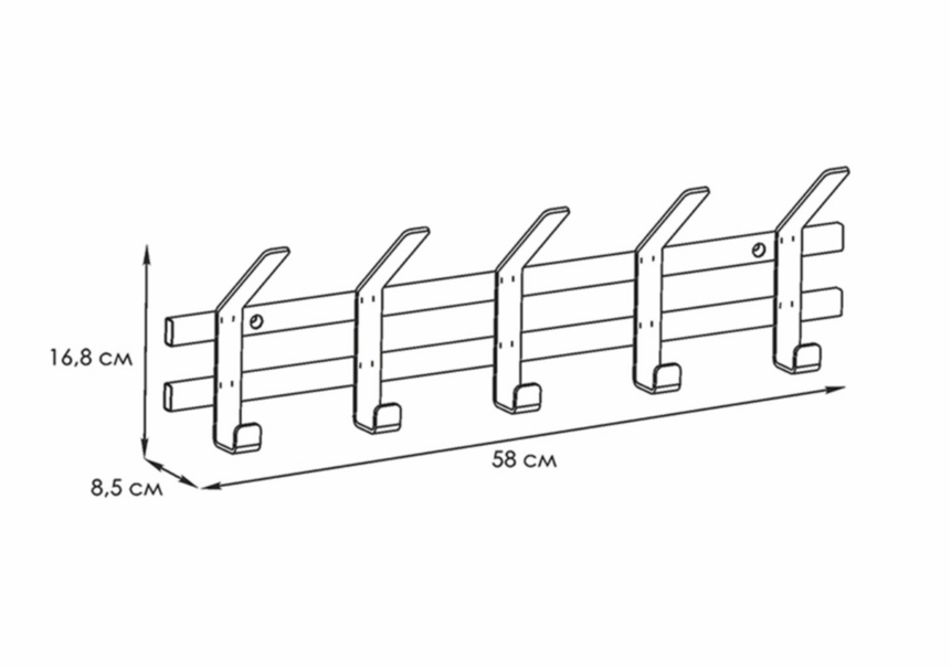 Универсальная вешалка для хранения вещей имеет 5 двойных крючков - каждый из них выдерживает до 7 кг постоянной нагрузки.