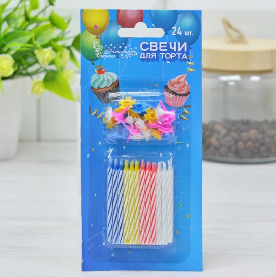 Набор декоративных свечей отлично подойдёт для украшения праздничного торта или другого десерта.