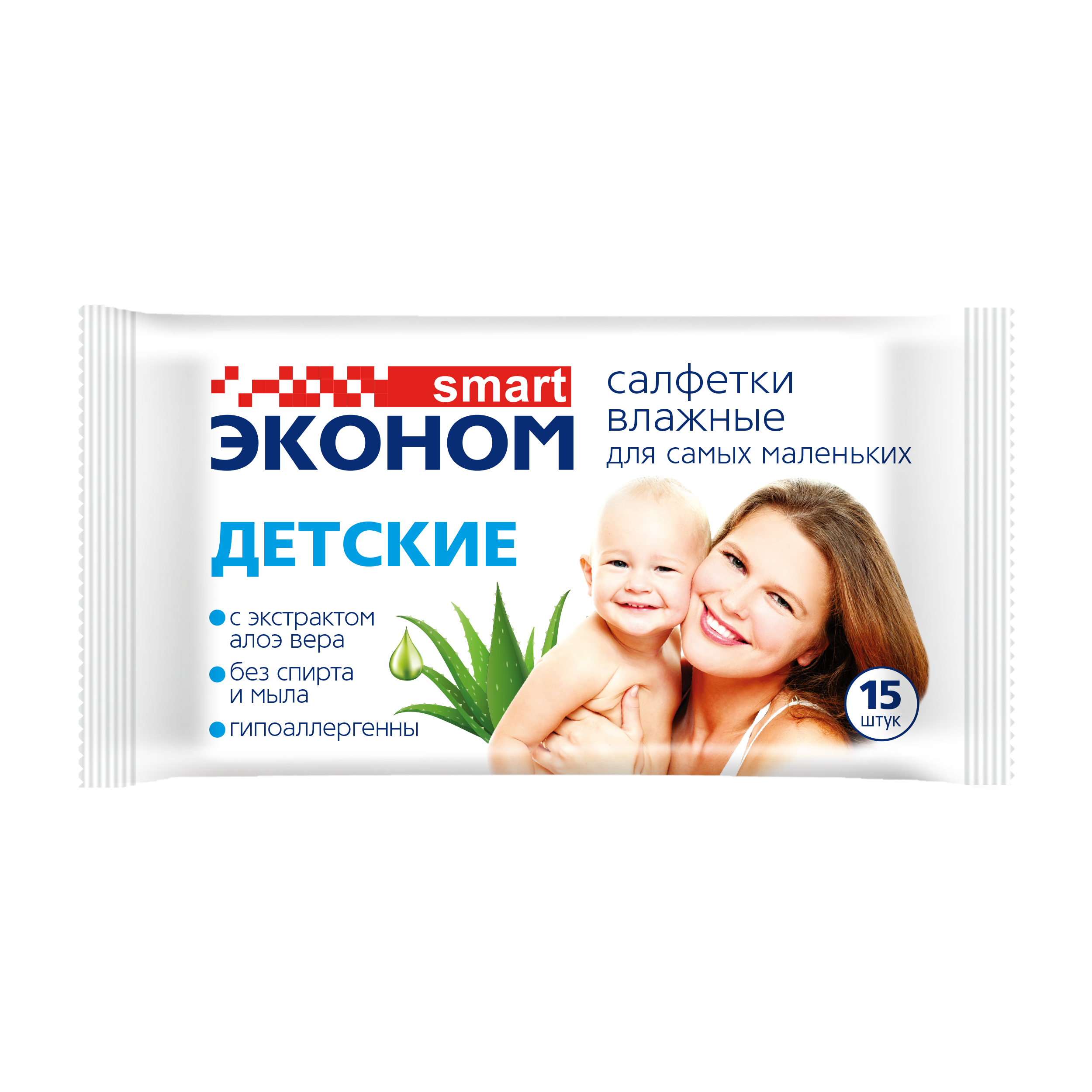 Салфетки влажные №15 детские с алоэ Эконом smart 80839