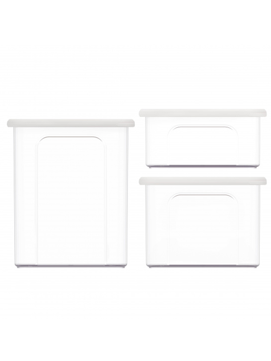 Банки для сыпучих продуктов можно хранить в холодильнике и морозильной камере, использовать в СВЧ и посудомоечной машине. Крышка из ТЭП плотно прилегает к корпусу и защищает содержимое от проникновения влаги. В наборе прямоугольные банки объемом 800мл, 1.4л и 2.2л. Контейнеры для хранения помогут вам упорядочить пространство и создать особую атмосферу.