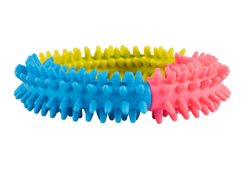 Игрушка выполнена из прочной и долговечной термопластичной резины. Предназначена для активных игр дома и на свежем воздухе. Особая форма и шипованная поверхность служат для полезного массажа десен, очищения зубов от налета и тренировки всего челюстного аппарата.