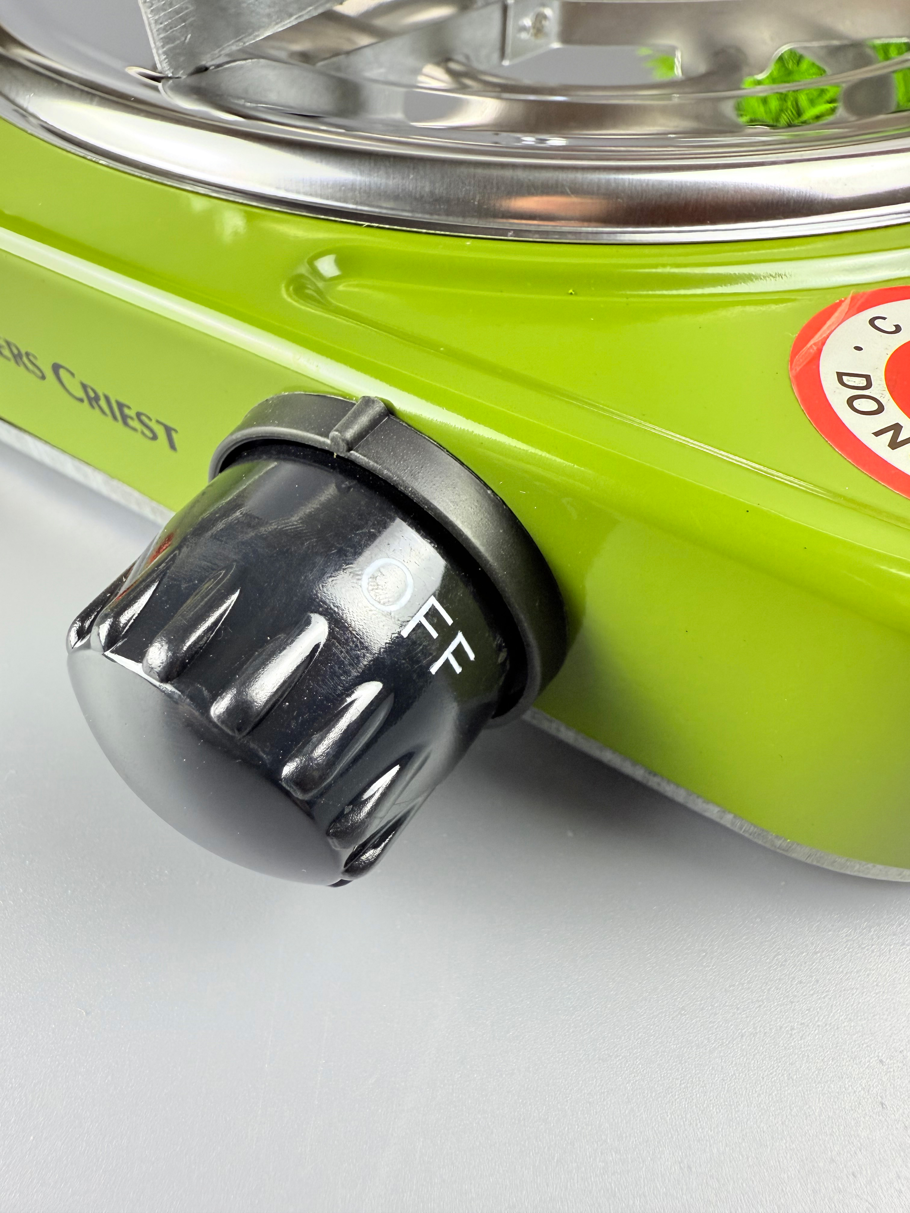 Плита компактная электрическая зеленого цвета оснащена одной конфоркой.Эмалевое покрытие панели обеспечивает легкую очистку от загрязнений. Электрическая компактная плита удобно управляется при помощи поворотного механизма, который позволит выбрать одну из пяти ступеней мощности.