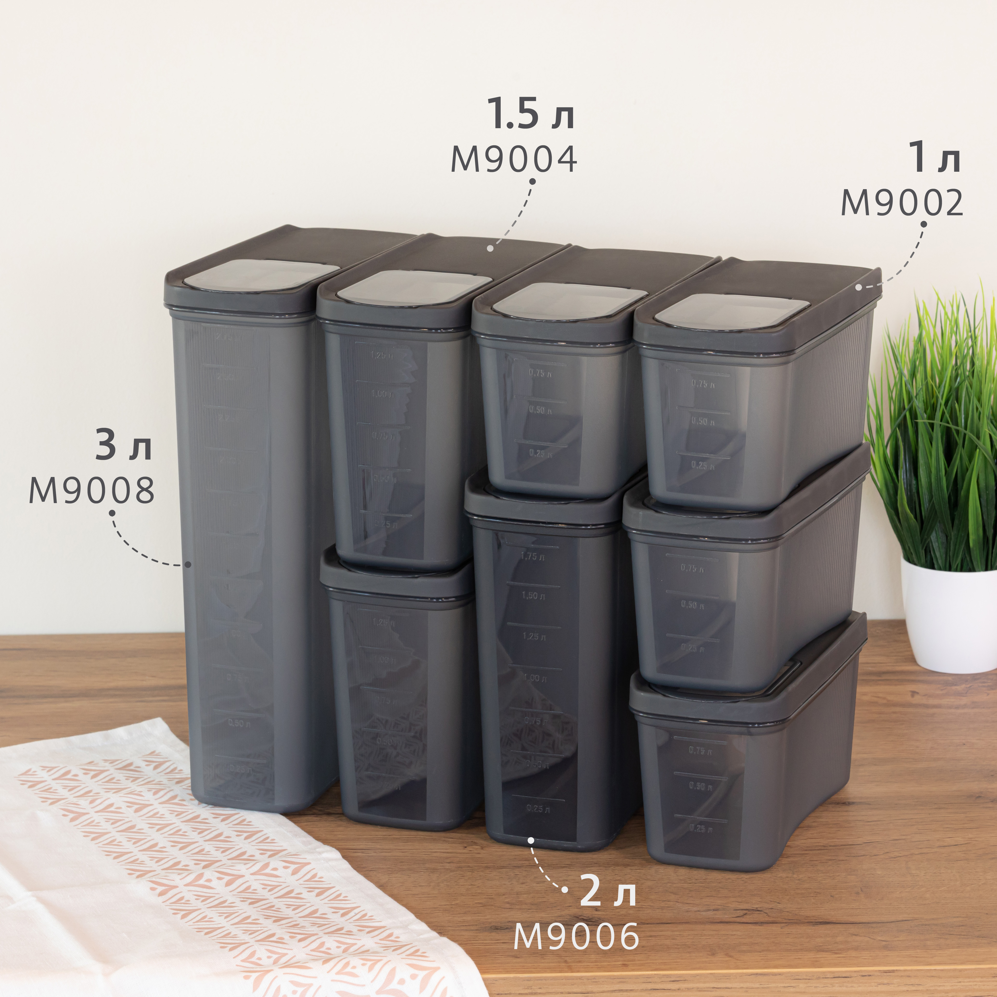 Емкость для сыпучих продуктов "Лайн" 3л (графитовый) М9008