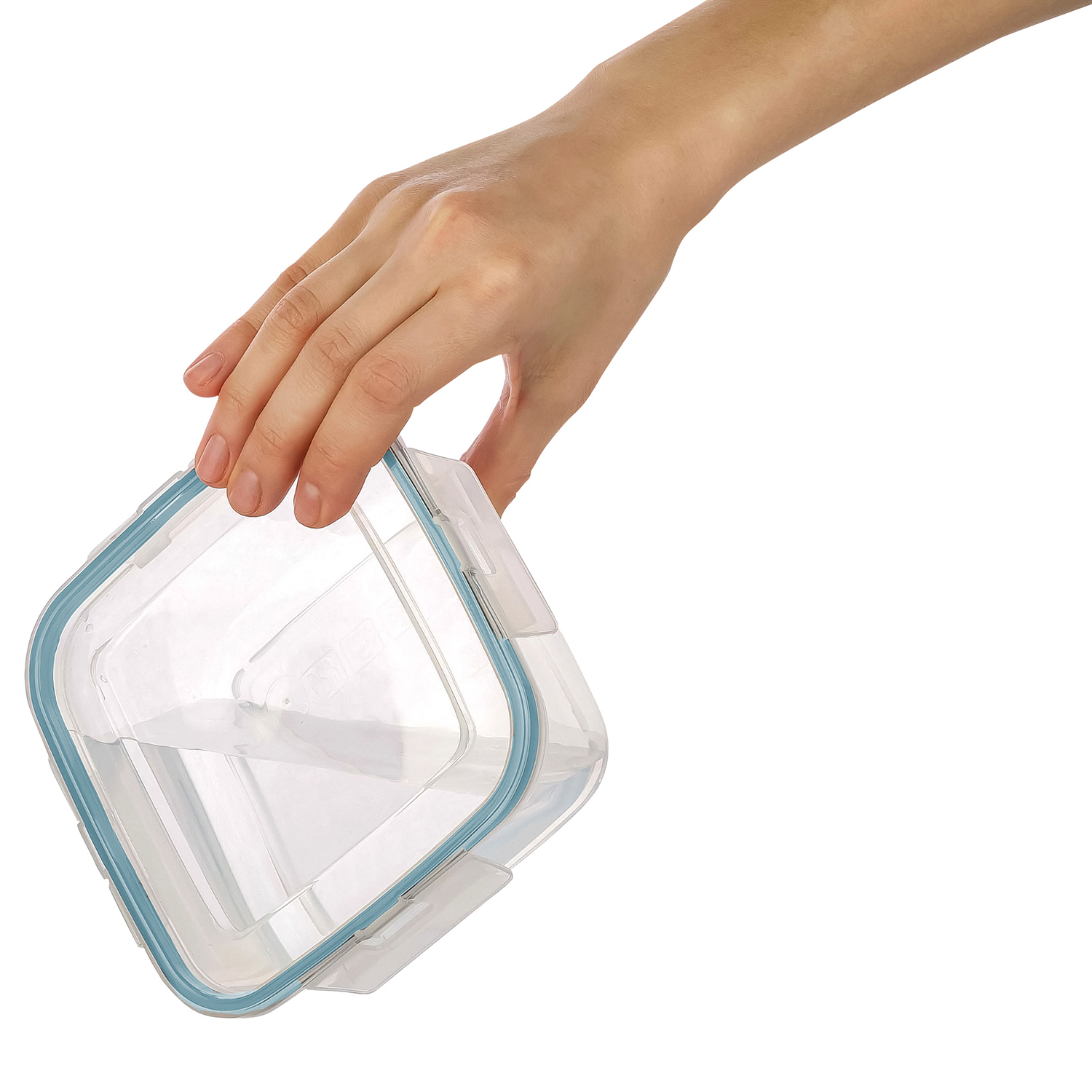 Герметичное закрытие: Защёлки надежно фиксируют крышку, предотвращая протечки и попадание воздуха, что помогает сохранить свежесть продуктов на длительный срок.