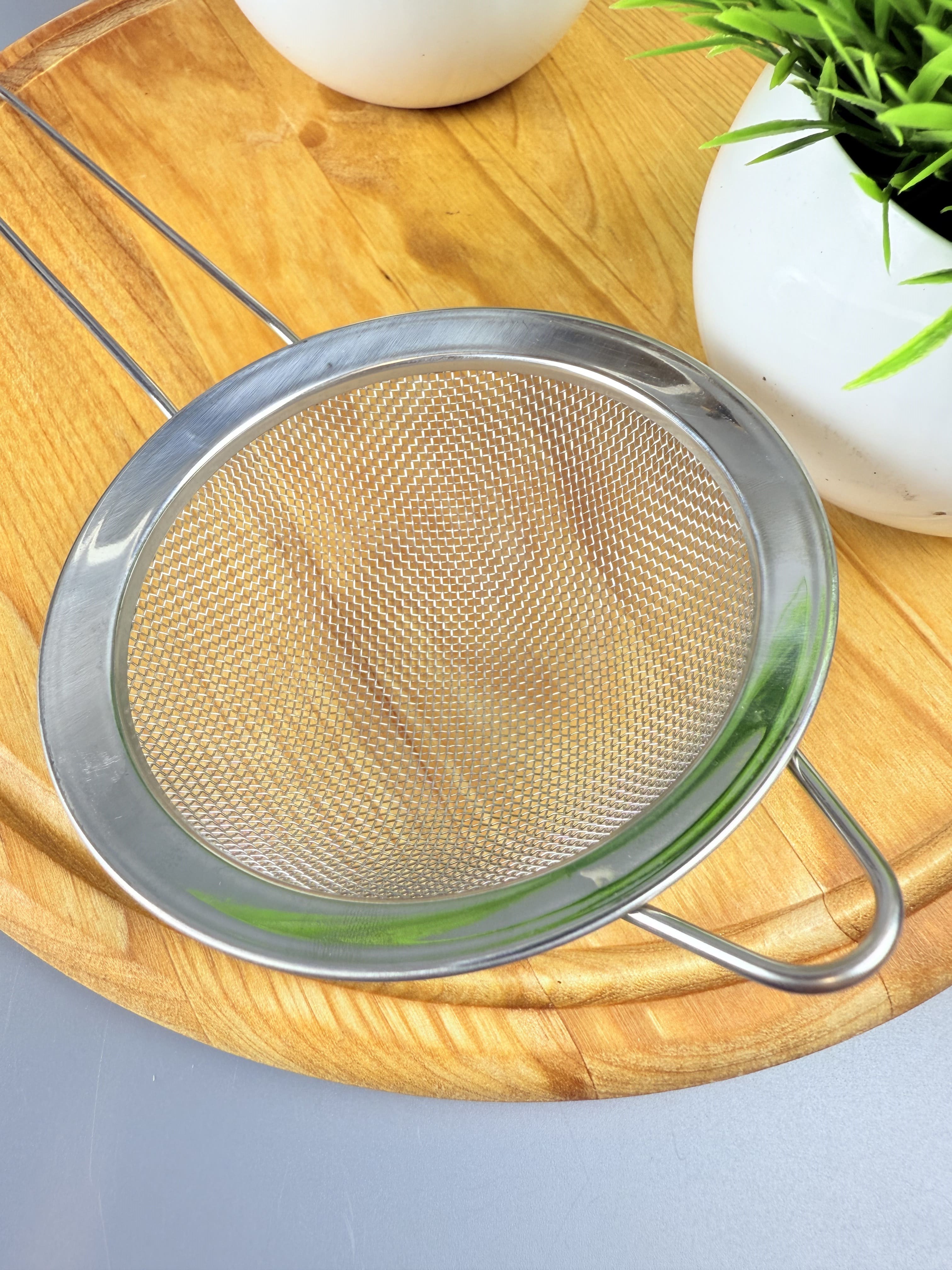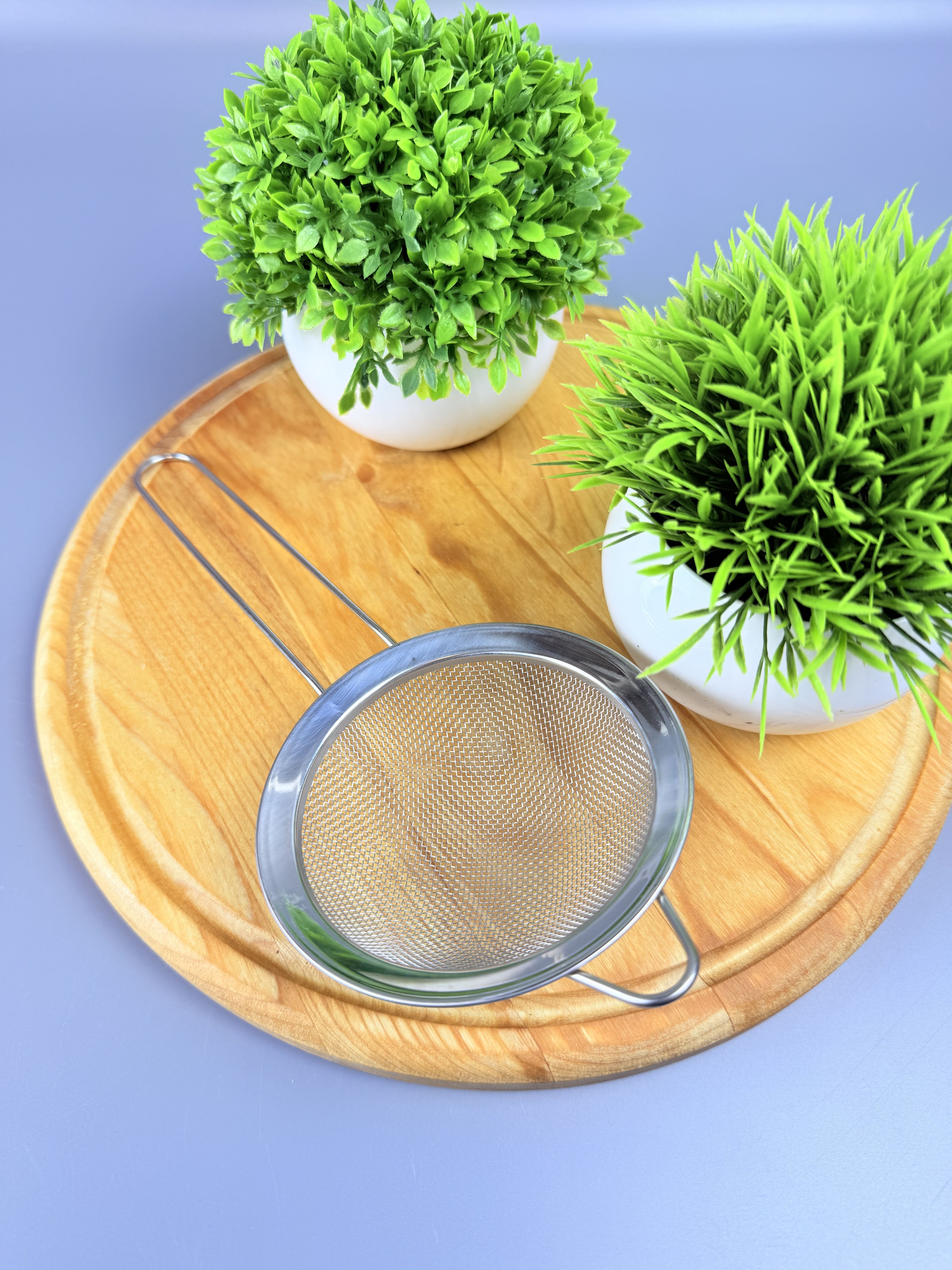 Кухонное металлическое сито с длинной ручкой и мелкими ячейками для просеивания, промывания, процеживания-незаменимый кухонный аксессуар для хозяюшек на каждой кухне! Диаметр сито для кухни 10 см. Изготовлено кухонное сито-шумовка с длинной ручкой из высококачественной нержавеющей стали. Прочная стальная сетка сито с мелкими ячейками и корпус из нержавеющей стали обеспечивают изделию износостойкость и долговечность, а так же антикоррозийность. Предназначено сито для просеивания муки, крахмала, какао, сахарной пудры; для промывания круп, ягод зелени; процеживания бульона, макарон; перетирания ягод, овощей, фруктов, творога; бланшировки томатов. Удобно использовать кондитерское сито с мелкими ячейками для просеивания муки, крахмала, сахарной пудры, какао. Еще используется металлическое сито для бланшировки овощей, для протирания ягод, творога. Можно также использовать сито-дуршлаг для мытья ягод, различных круп, макаронных изделий и другие продукты.