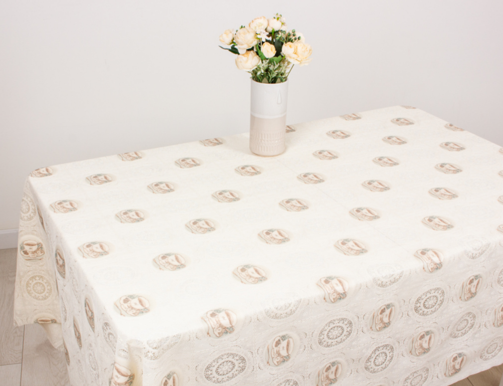 Клеенка ПВХ без основы с текстурной поверхностью и печатным рисунком. Печатный рисунок нанесен на высокоточном оборудовании, закреплен защитно-декоративным покрытием ПВХ. Клеенка устойчива к механическим повреждениям, деформациям и разрывам, не мнется, не скручивается и ровно ложится на любую поверхность. Клеенка защищает поверхность, помогает поддерживать чистоту, облегчает труд хозяйки при уборке и повышает настроение. Скатерть идеально принимает форму стола, не скользит, термостойка, не боится повышенной влажности, практична и проста в уходе.