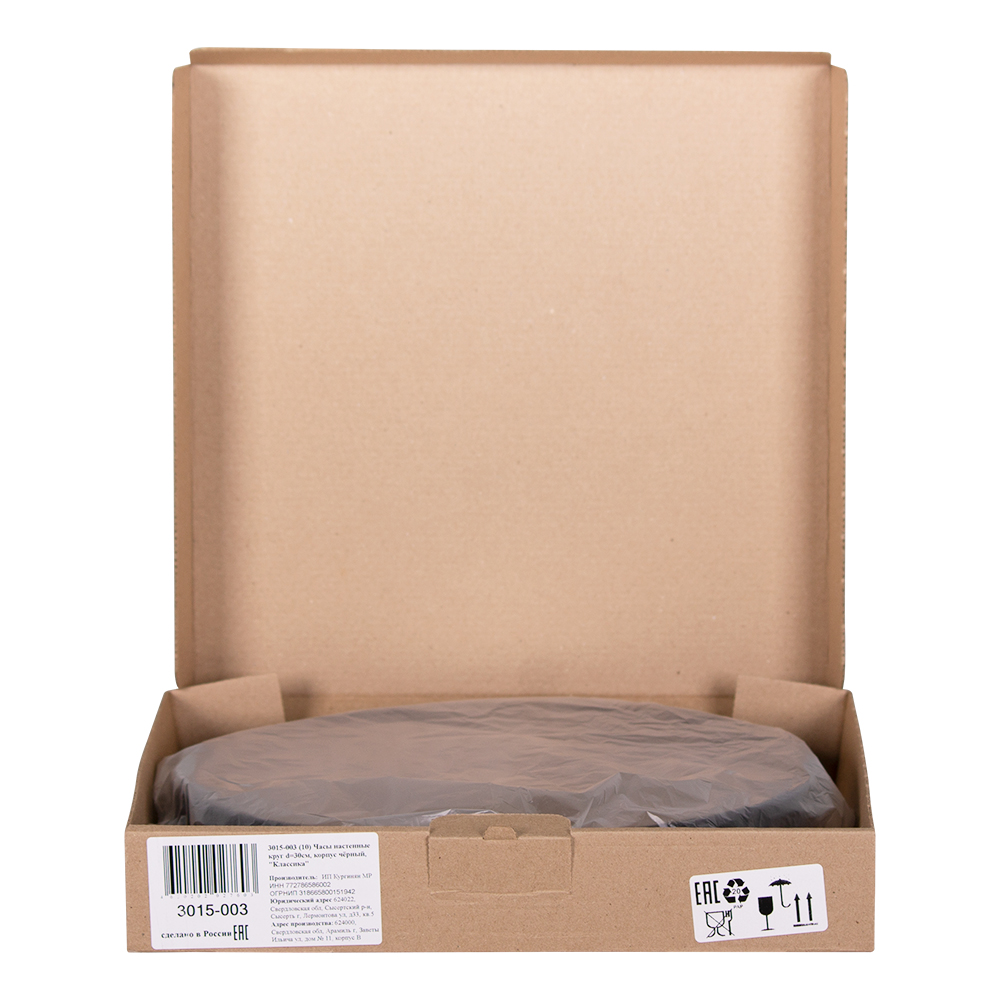 3015-003 Часы настенные круг d=30см, корпус чёрный, "Классика", "Рубин"