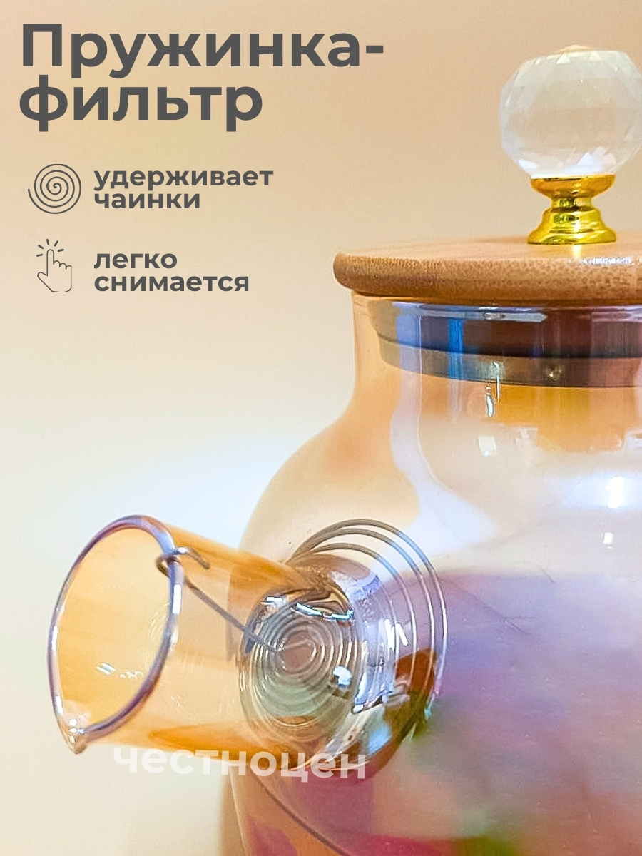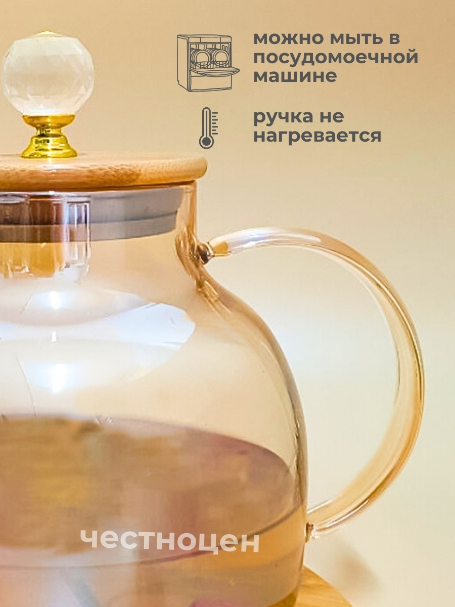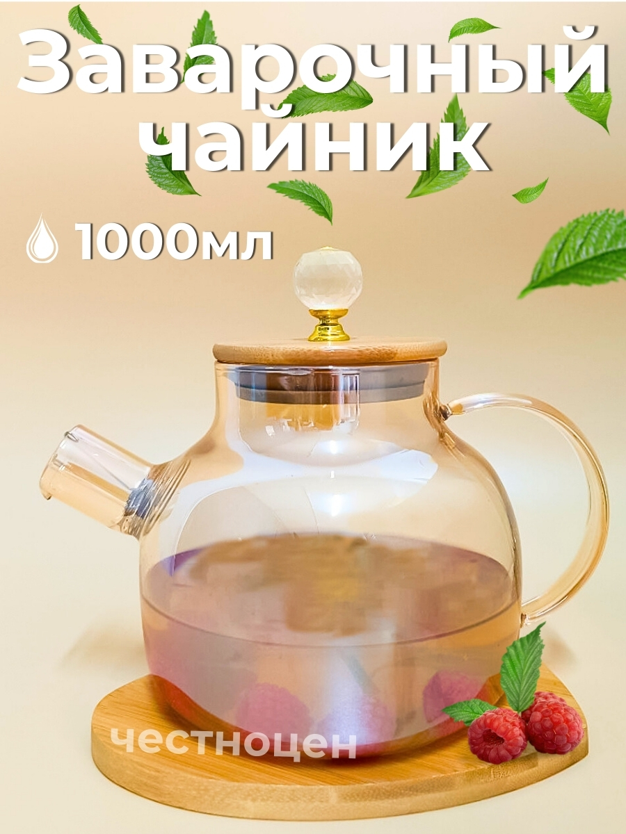 Чайник заварочный 1л стеклянный с бамбуковой крышкой OLS-339-21