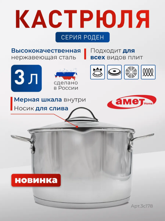 Кастрюля 3,0л "Роден" 200мм ТРС.КС 3с178