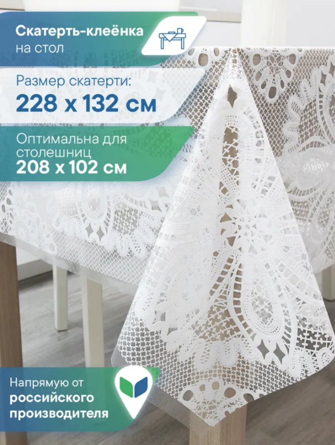 Скатерть не скользит по столу, не образует складок, имеет незначительный эффект мягкой драпировки.