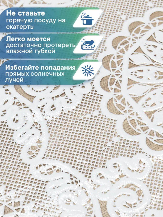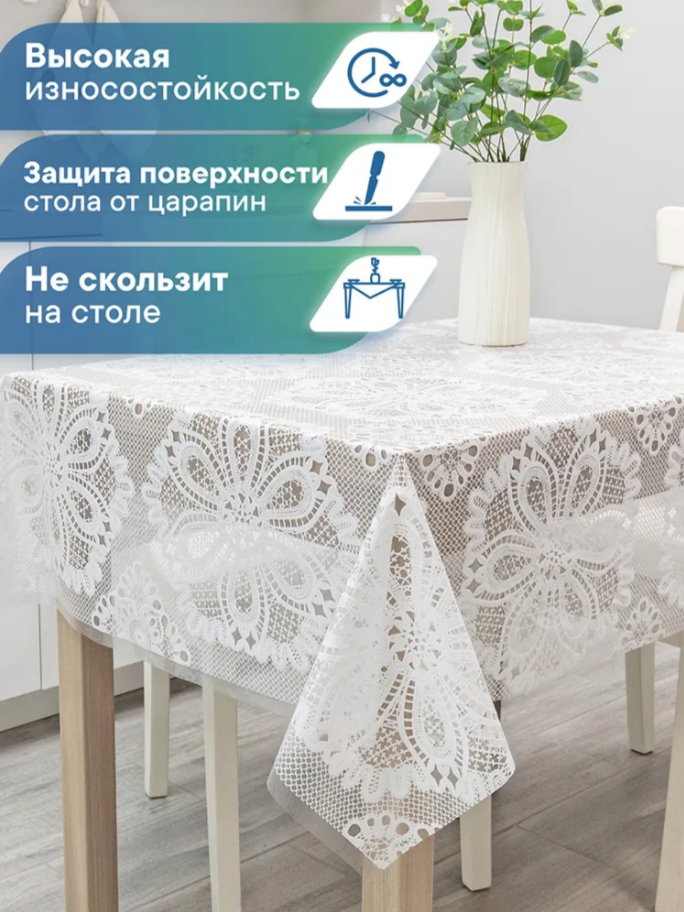 Скатерть не скользит по столу, не образует складок, имеет незначительный эффект мягкой драпировки.
