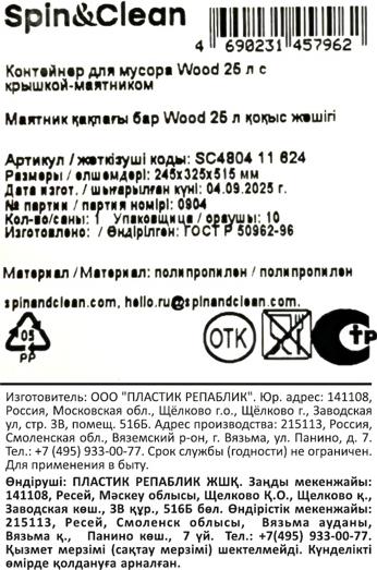 Контейнер для мусора Wood 25 л с крышкой-маятником SC480411624