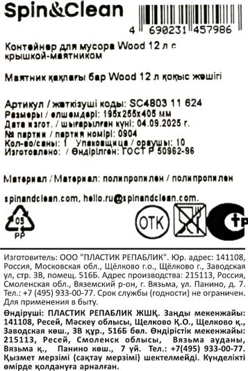 Контейнер для мусора Wood 12 л с крышкой-маятником SC480311624