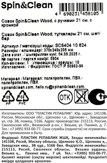 Совок Spin&Clean Wood, с ручками 21 см, с кромкой SC540410624