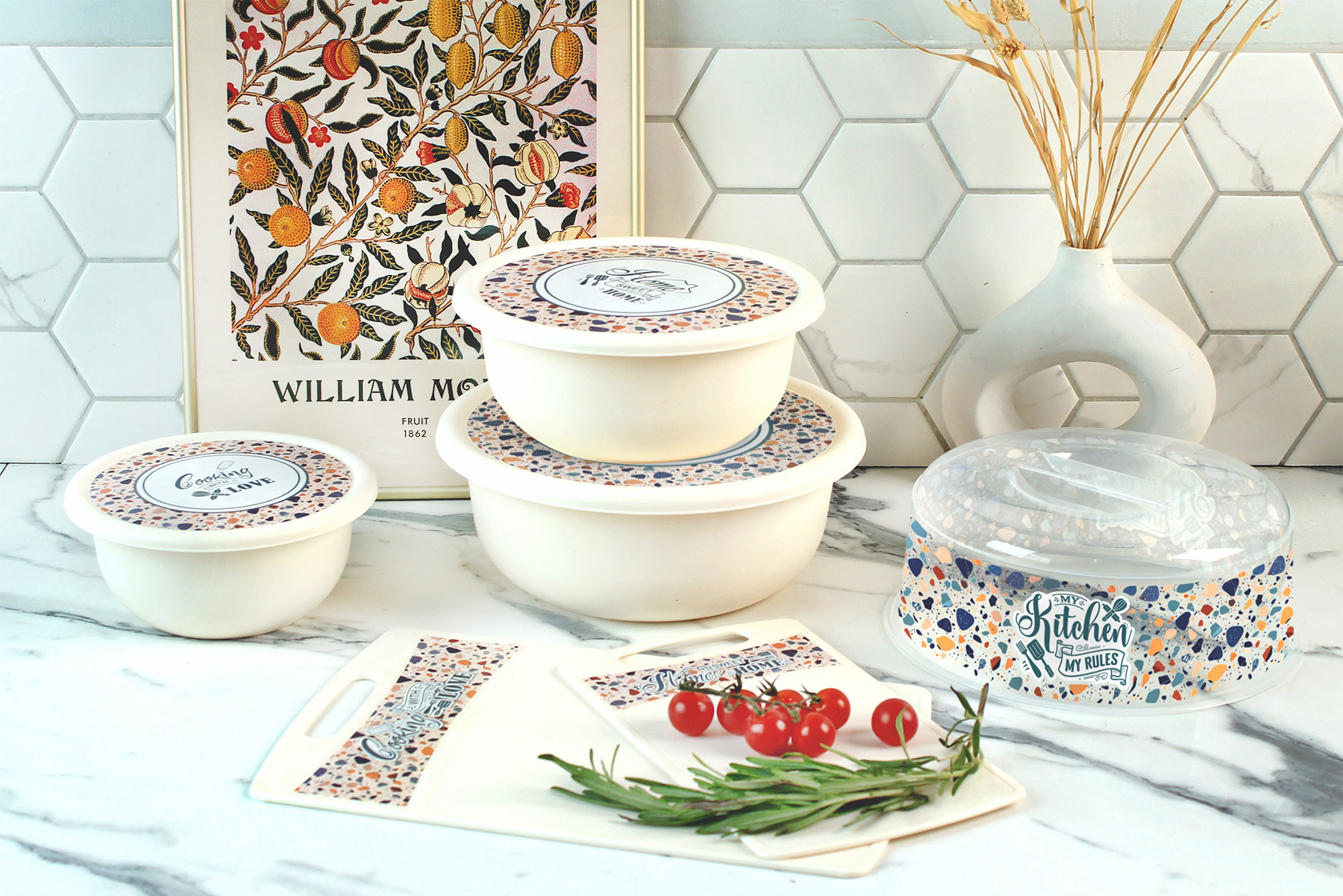 Доска разделочная "Bergamo" прямоуг. 335х220х4мм с декором"Терраццо"(светло-бежевый) 223134225/01