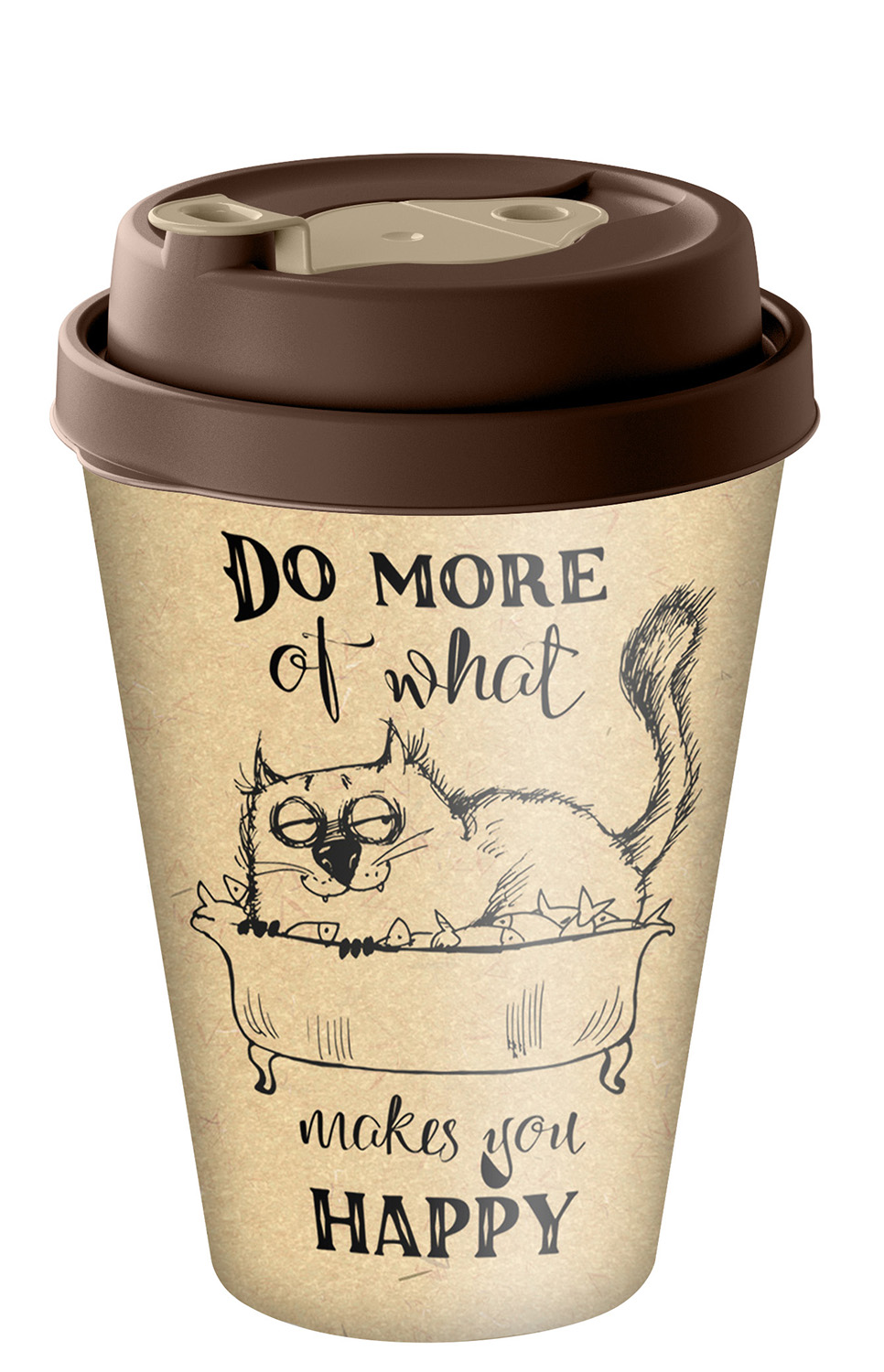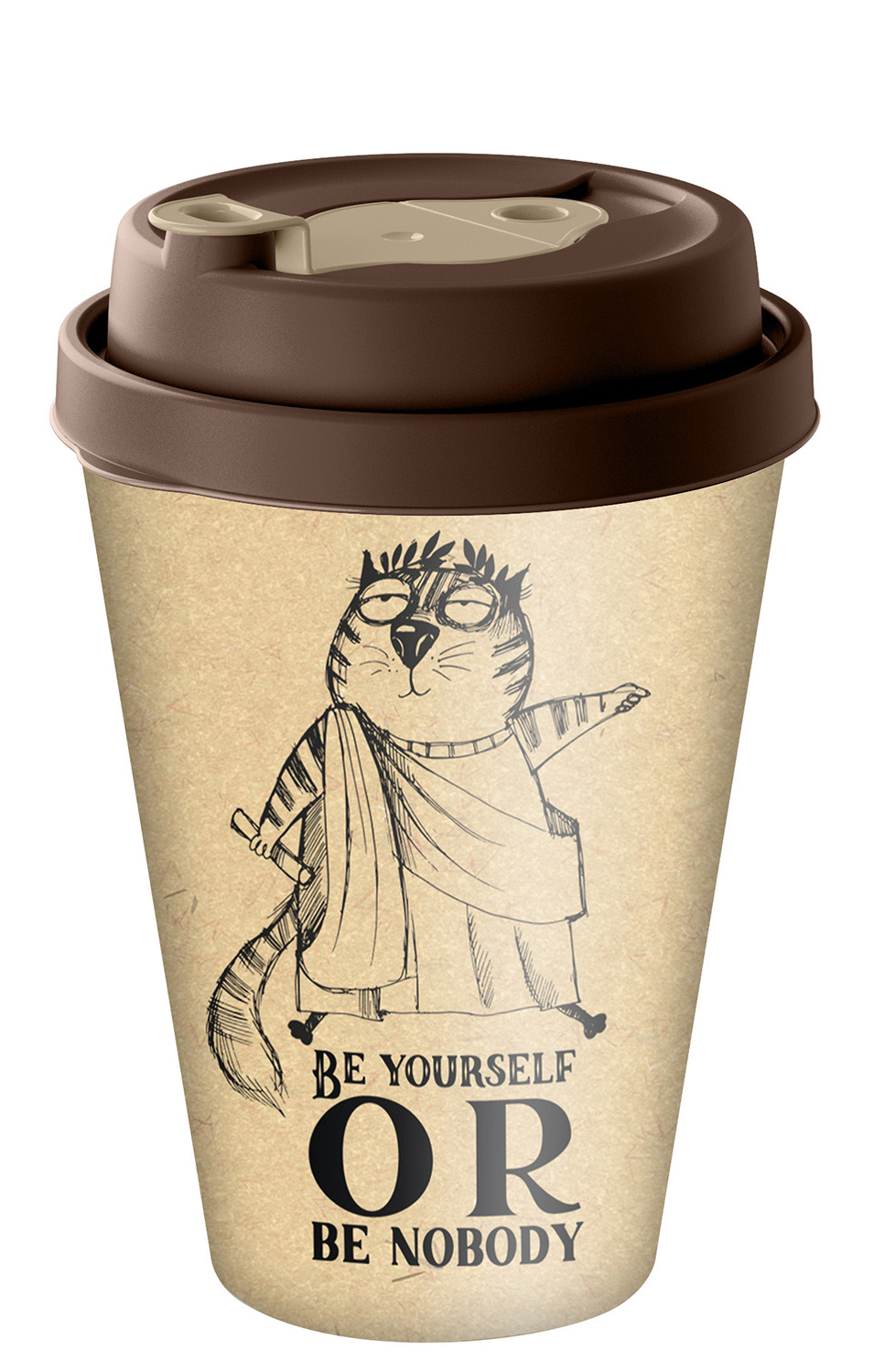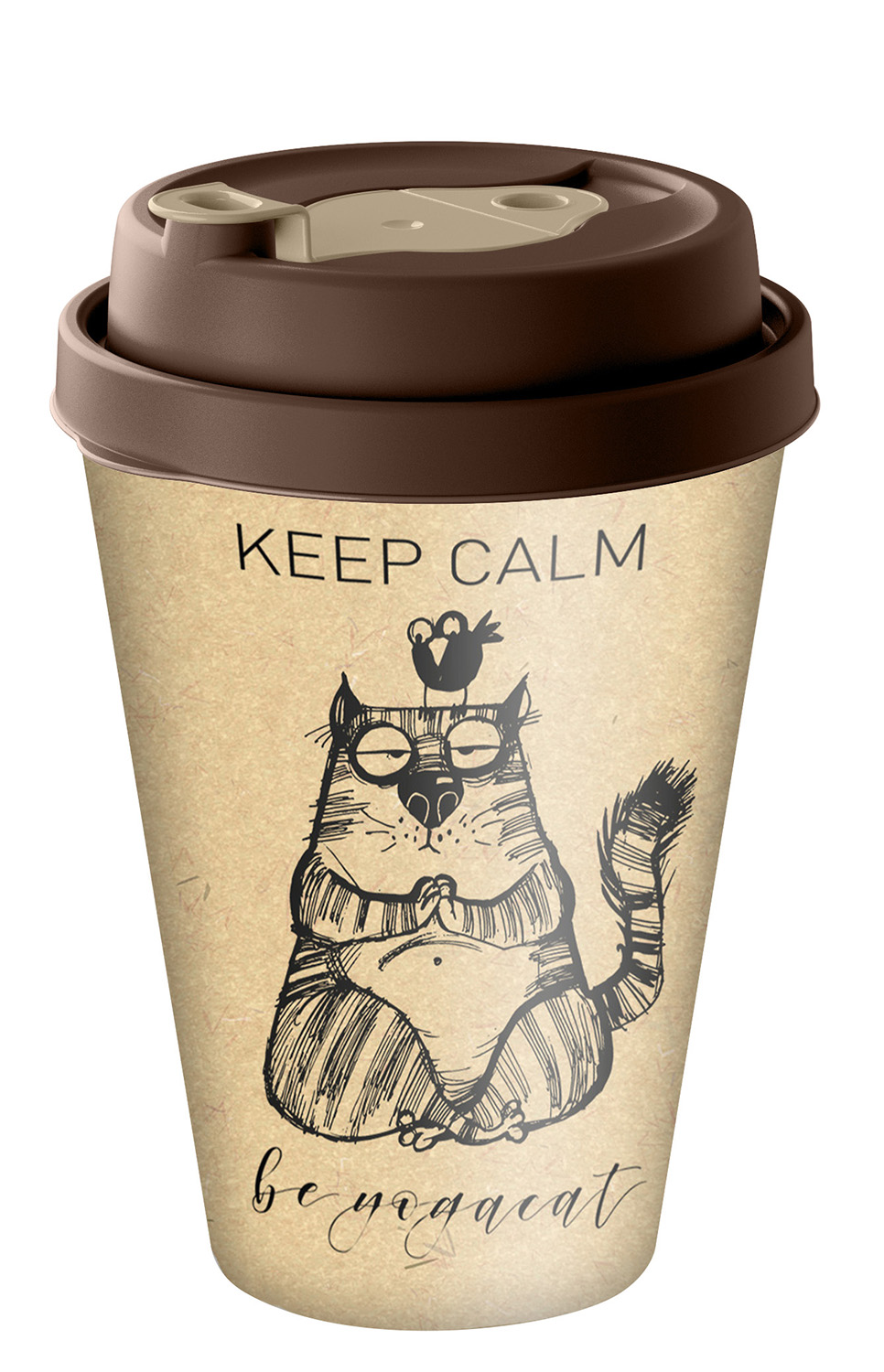 Стакан с крышкой 420 мл с декором с клапаном "my cats" (темно-коричневый) 223106224/01