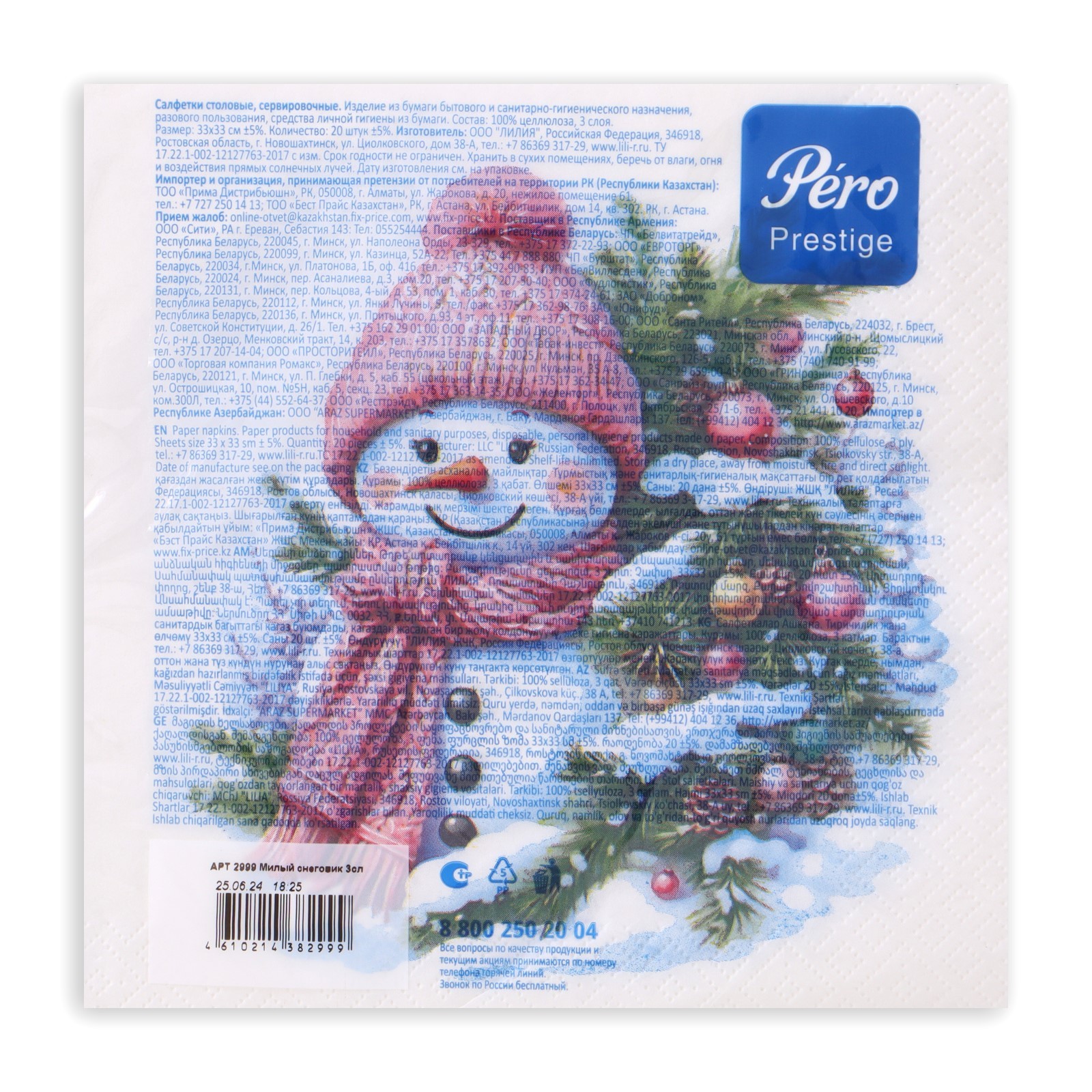 Салфетки Pero Prestige 33*33 Милый снеговик 3сл 20л 2999