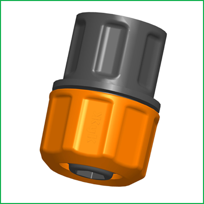 Шланг надевается на внутренний штуцер, при затягивании внешней гайки "лепестки"цанги смыкаются, и шланг диаметром 3/4 надёжно фиксируется.