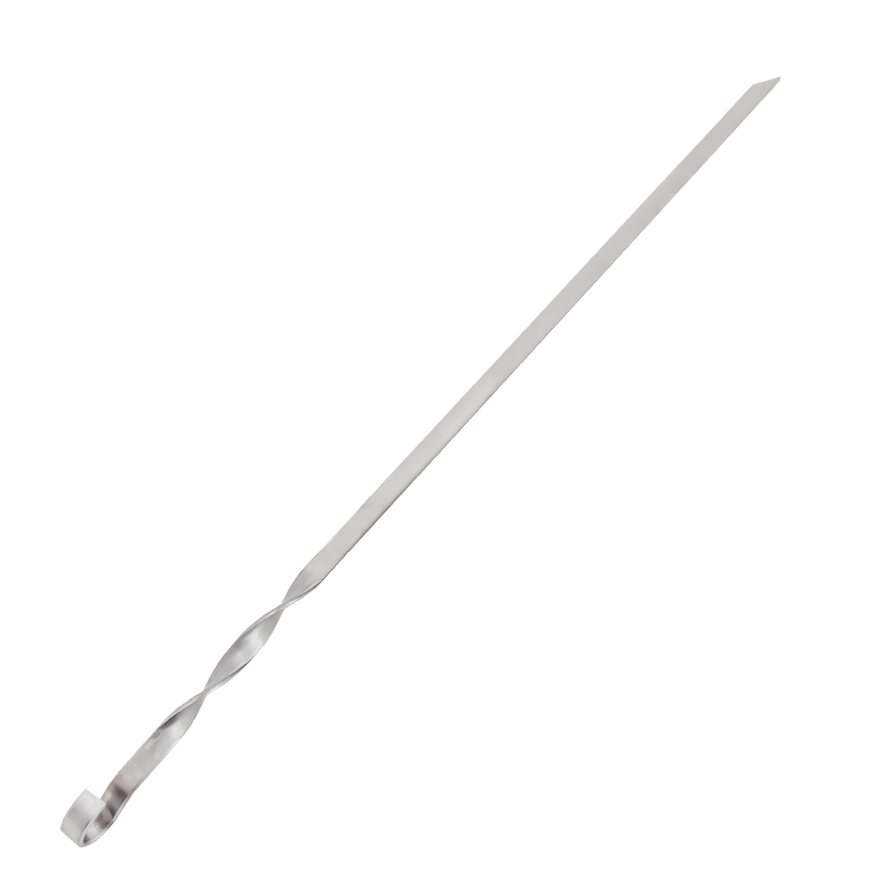 Шампур имеет заострённый наконечник для лёгкого нанизывания мяса или кусочков овощей. Рукоятка изготовлена в форме спирали для фиксирования стержня под нужным углом в специальных выемках на мангале.