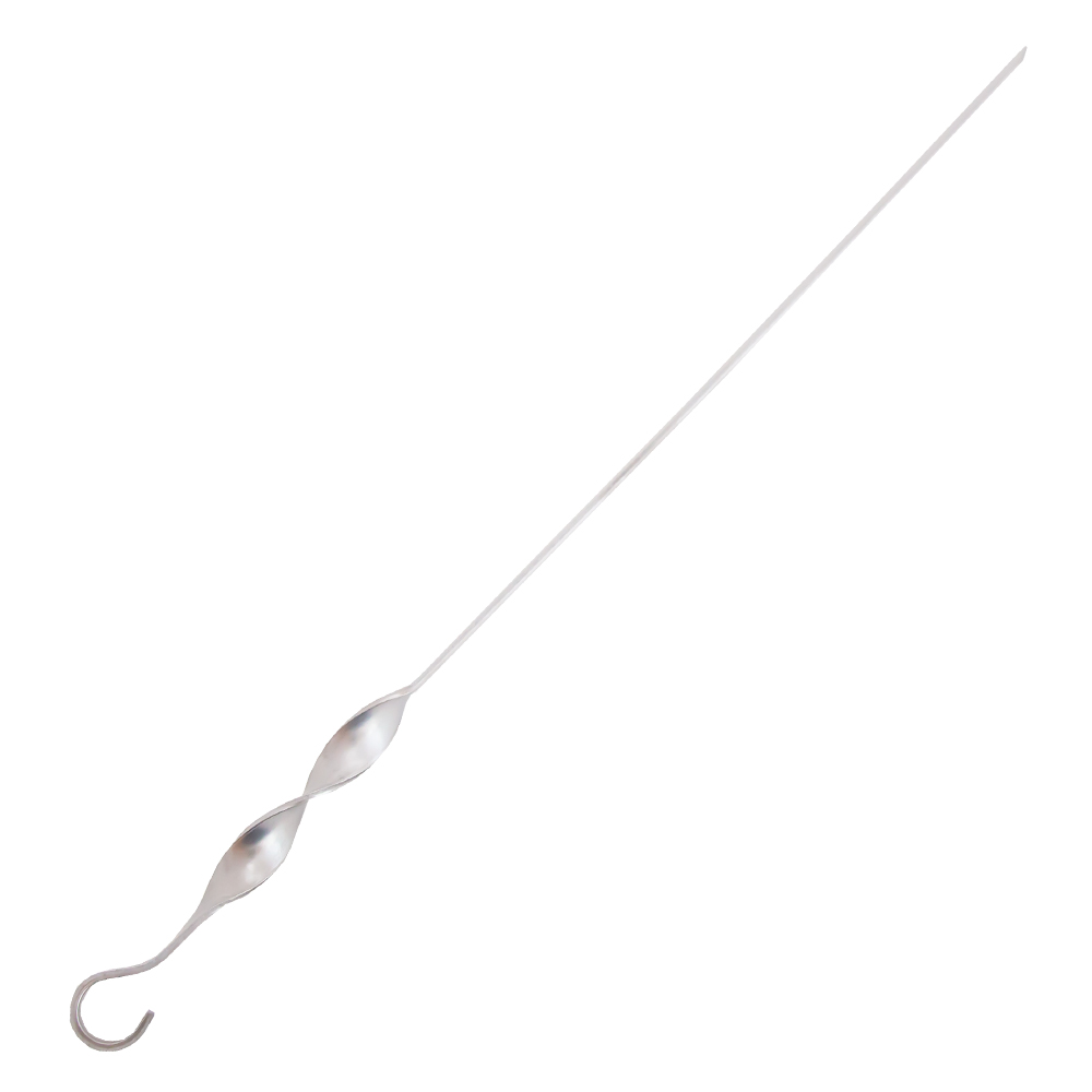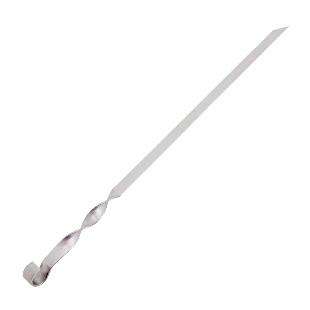 Товар производится из нержавеющей стали пищевого класса, которая не боится высокой температуры, коррозии, легко моется и может использоваться долгие годы. Шампур имеет заострённый наконечник для лёгкого нанизывания мяса или кусочков овощей. Рукоятка изготовлена в форме спирали для фиксирования стержня под нужным углом в специальных выемках на мангале.