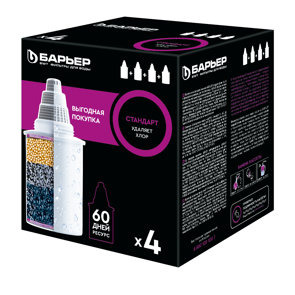 Выгодная упаковка! В упаковке 4 кассеты "БАРЬЕР Стандарт".