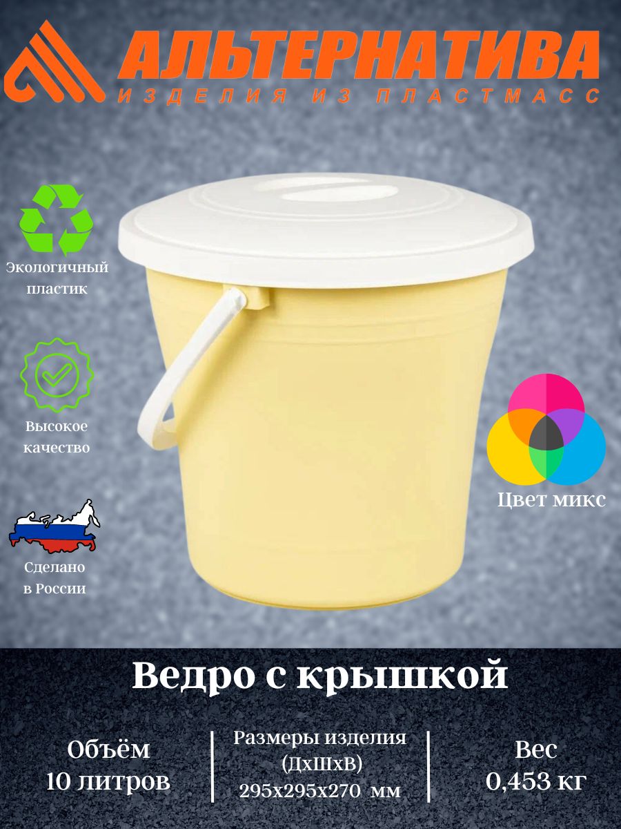 Ведро произведено из экологически чистого и ударопрочного материала. Ведро предназначено для применения в домашнем хозяйстве или на приусадебном участке. Ведро подойдет для сбора грибов, ягод, овощей, хранения и транспортировки воды и сыпучих продуктов, мусора. Ведро оснащено ручкой, для более удобной переноски и взвешивания, и крышкой, которая защитит содержимое от попадания пыли и влаги.