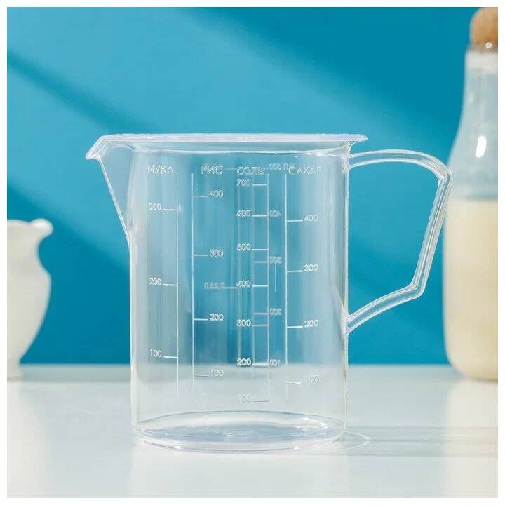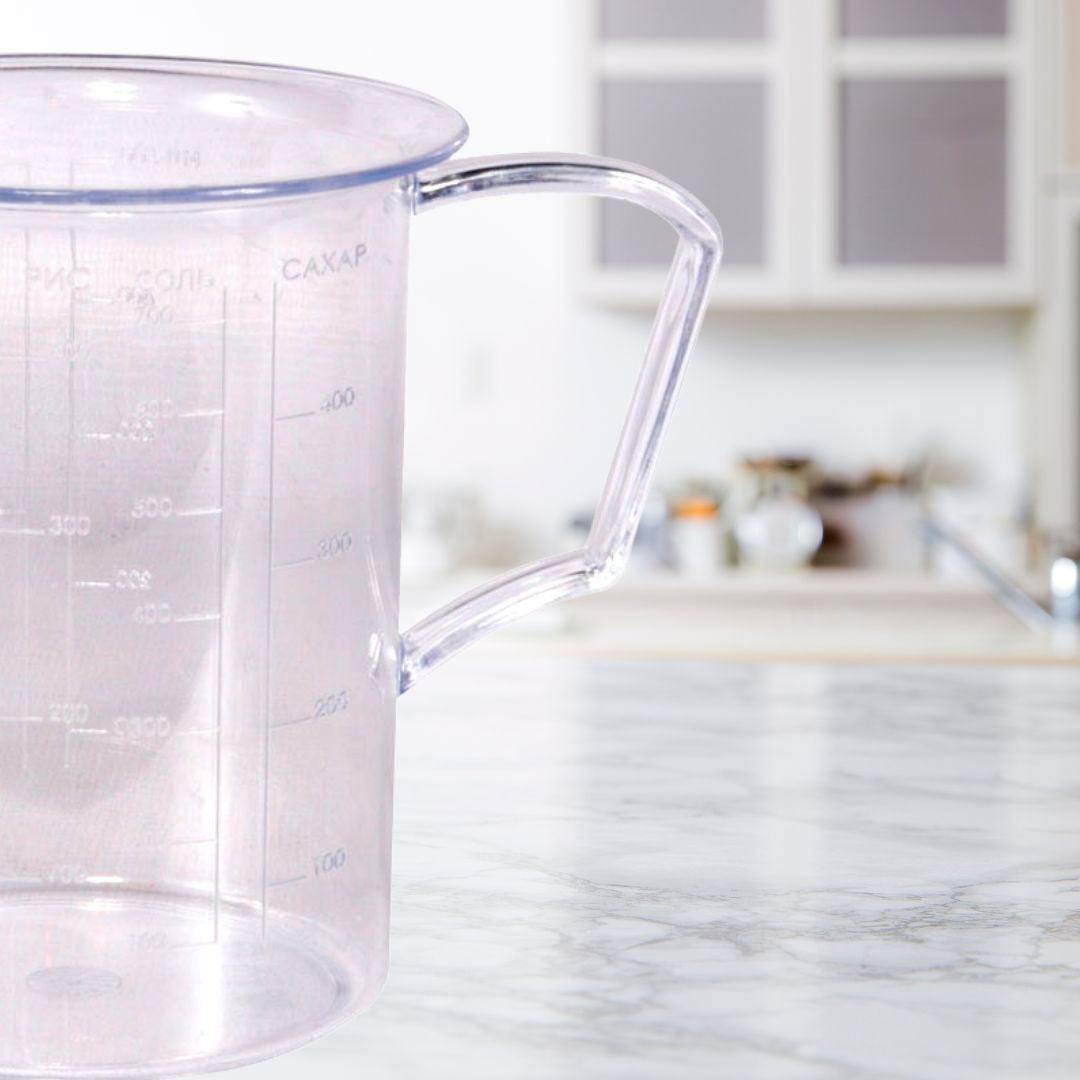 Мерная кружка предназначена для замера необходимого количества продуктов. Кремы, коктейли, фруктово-ягодные муссы удобно взбивать блендером прямо в этой кружке. У ёмкости есть эргономичная ручка и носик. Изделие изготовлено из качественного полистирола, безопасного для контакта с пищевыми продуктами.